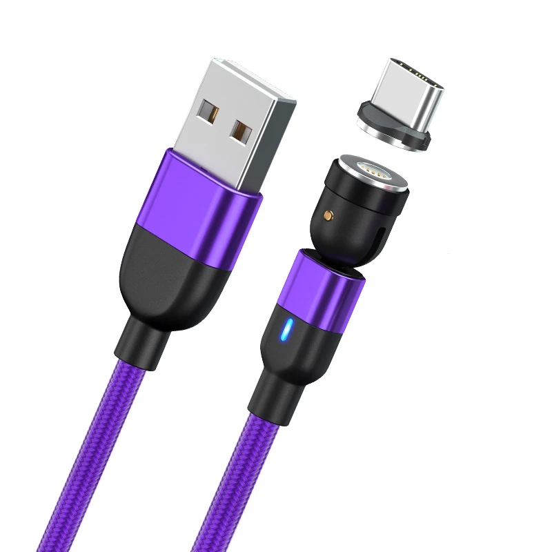 Магнитный кабель Micro USB C с поворотом на 360 градусов, светодиод...