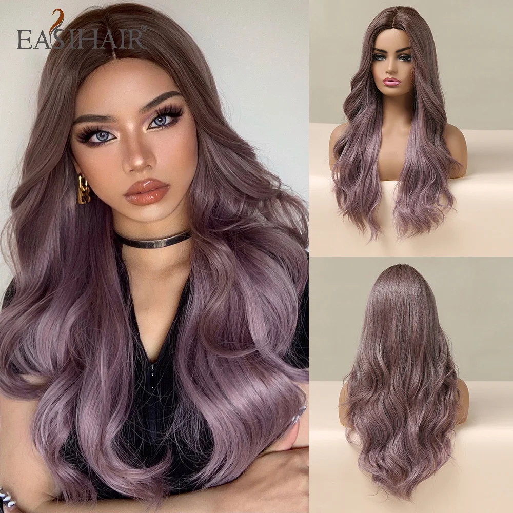 EASIHAIR синтетический Омбре Коричневый Золотой Блонд волнистые парики для женщин Длинная средняя часть термостойкий парик косплей вечерние свадебные