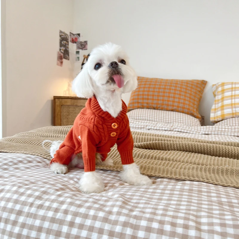 Зимний вязаный свитер для собак, одежда для домашних питомцев, толс...