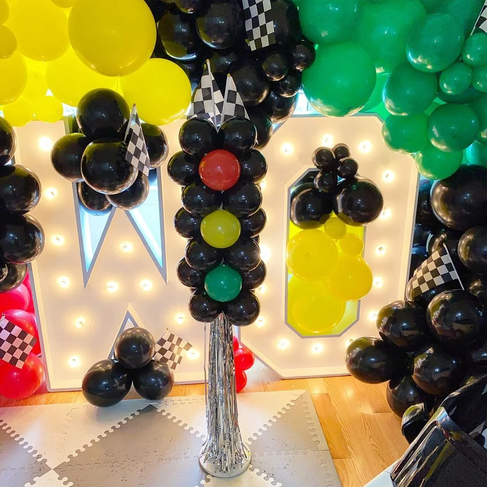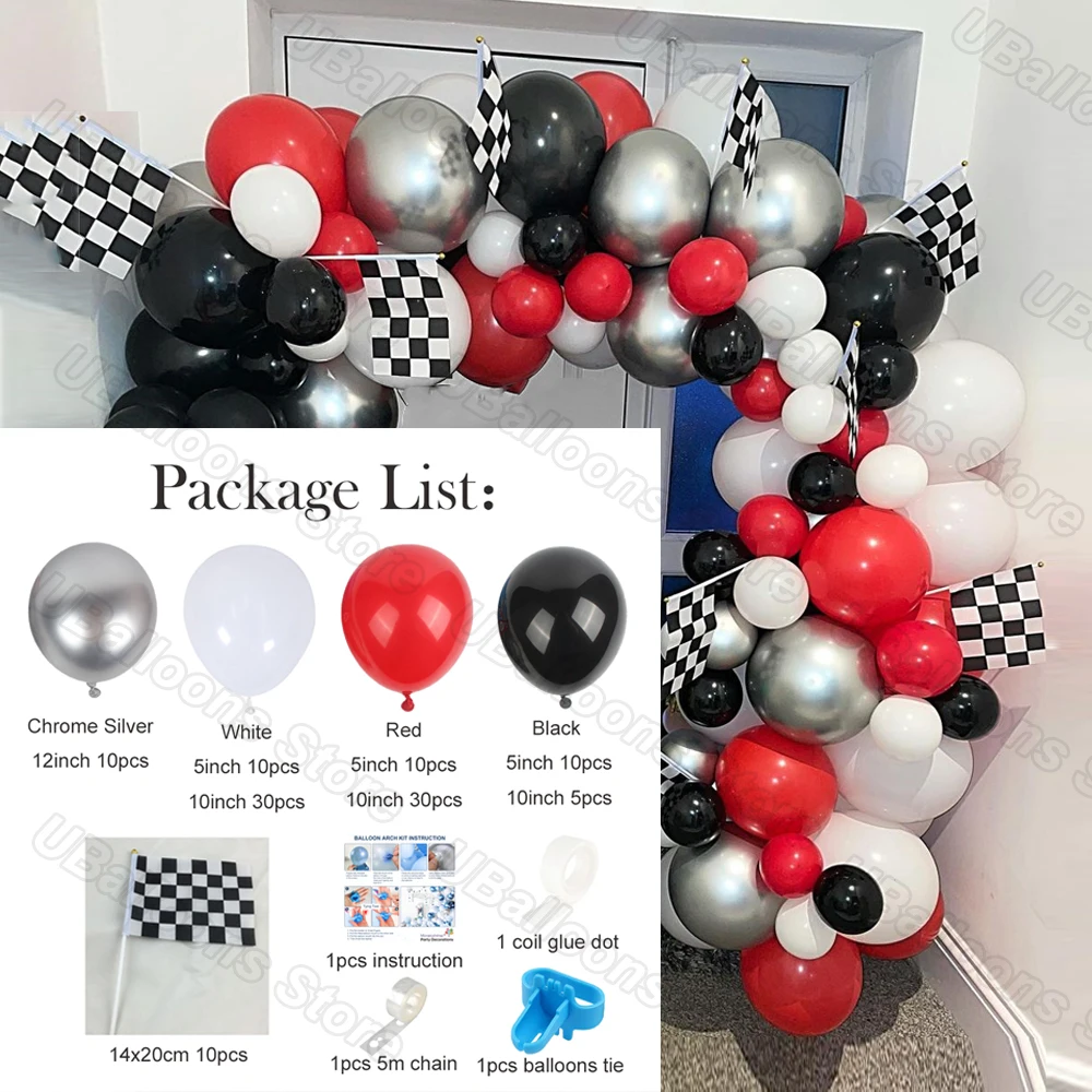 Гоночный автомобиль день рождения воздушные шары Checker флаг баннер Желтый Черный Красный Шар АРКА гирлянда для детей детский душ День Рождения Декор