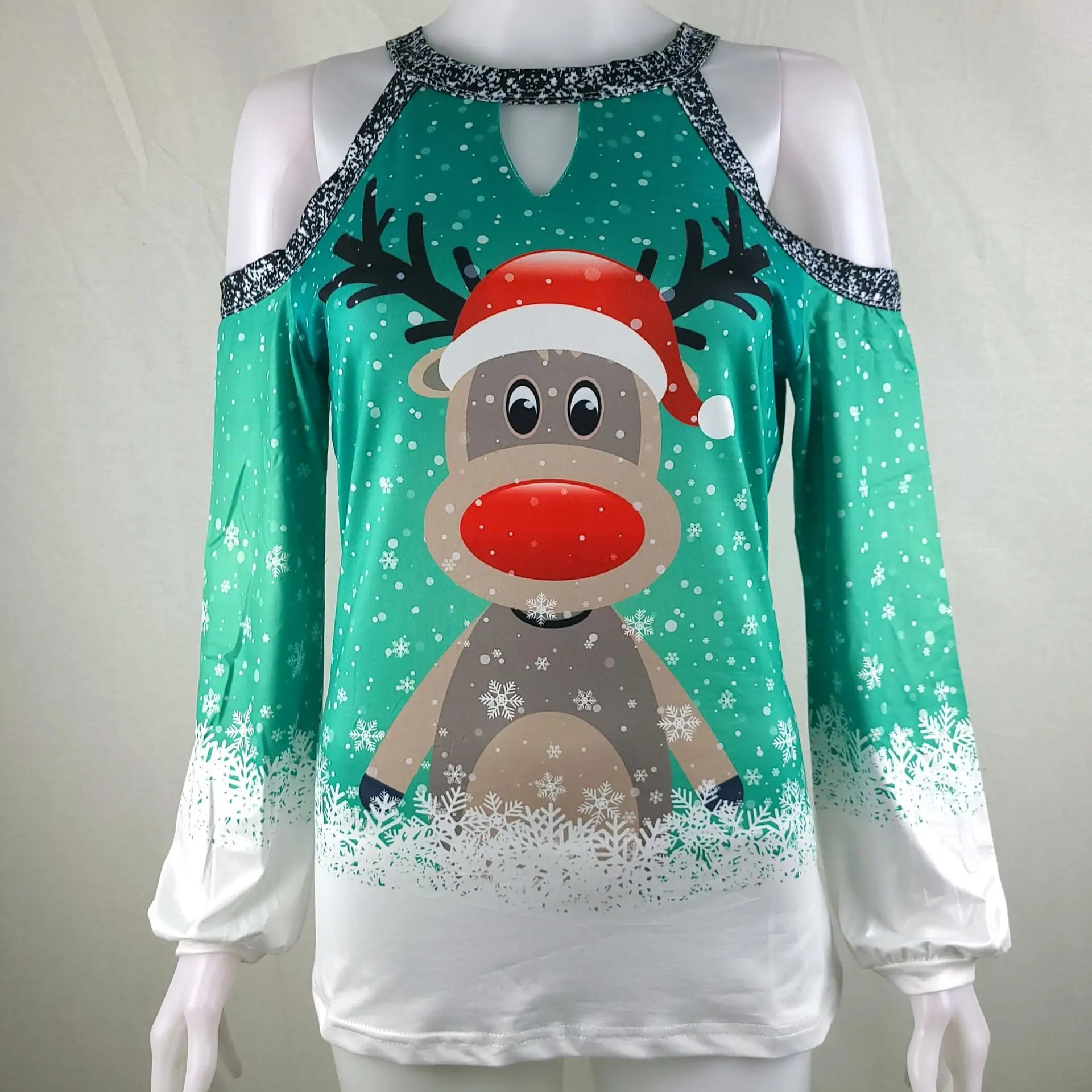 Женская футболка с длинным рукавом, блестками и круглым вырезом