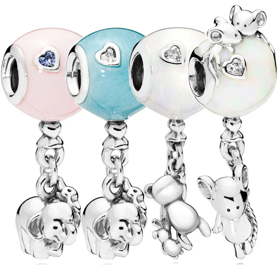 Подвеска в виде мыши и плюшевого медведя, слона, синего и розового воздушного шара, ювелирное изделие сделай сам, подходит для браслета из стерлингового серебра 925 пробы с бусинами