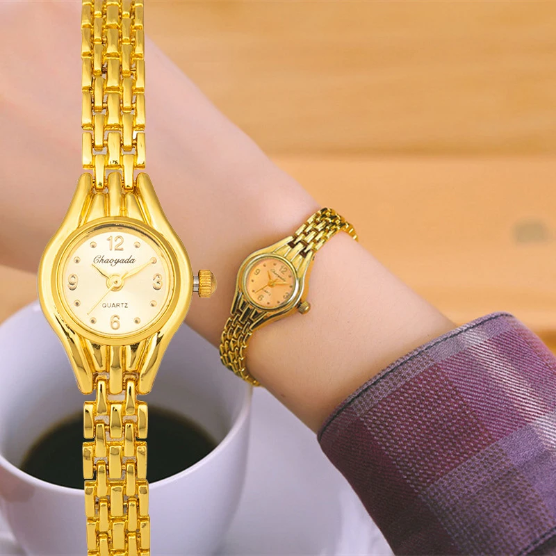 Часы наручные женские кварцевые с маленьким циферблатом, Роскошные ультратонкие водонепроницаемые Простые повседневные, золотистые
