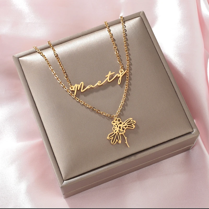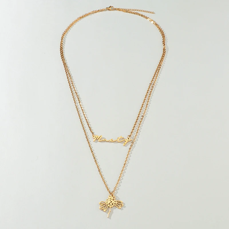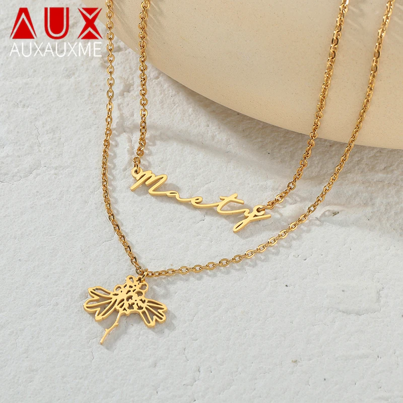 Auxauxme на заказ Боярышник Цветок Имя ожерелье из нержавеющей стали двойной слой Цепи чокер персонализированные для женщин ювелирные изделия подарки