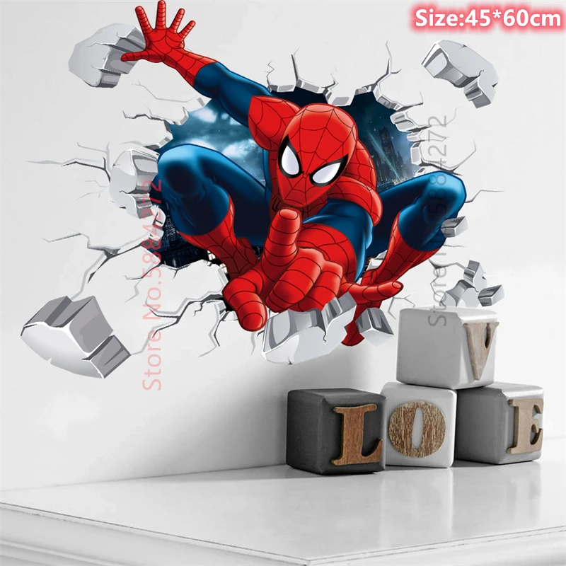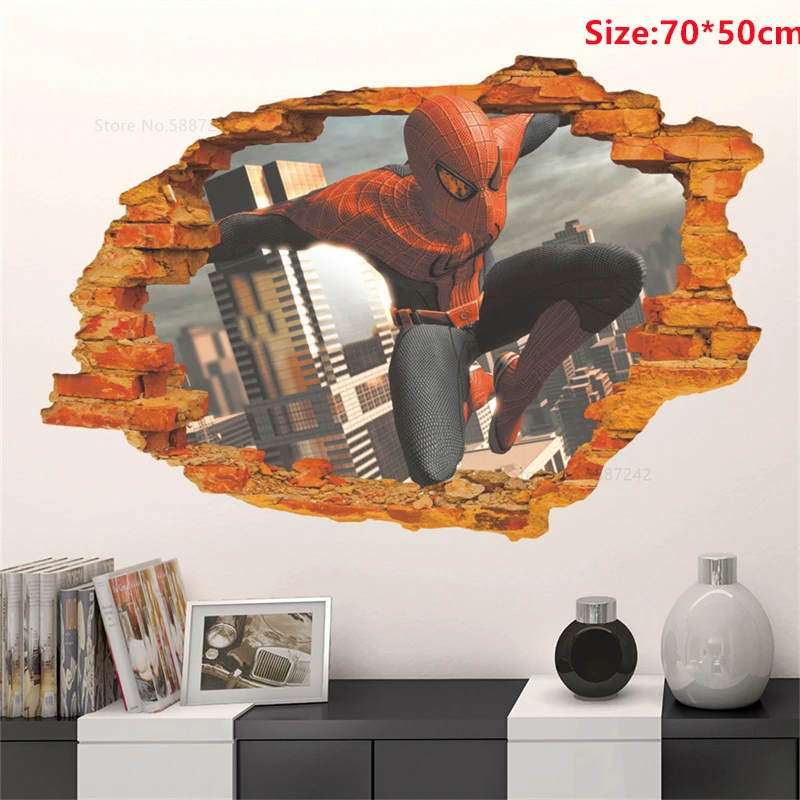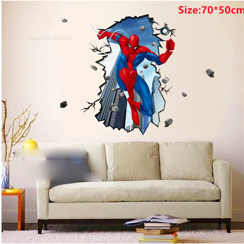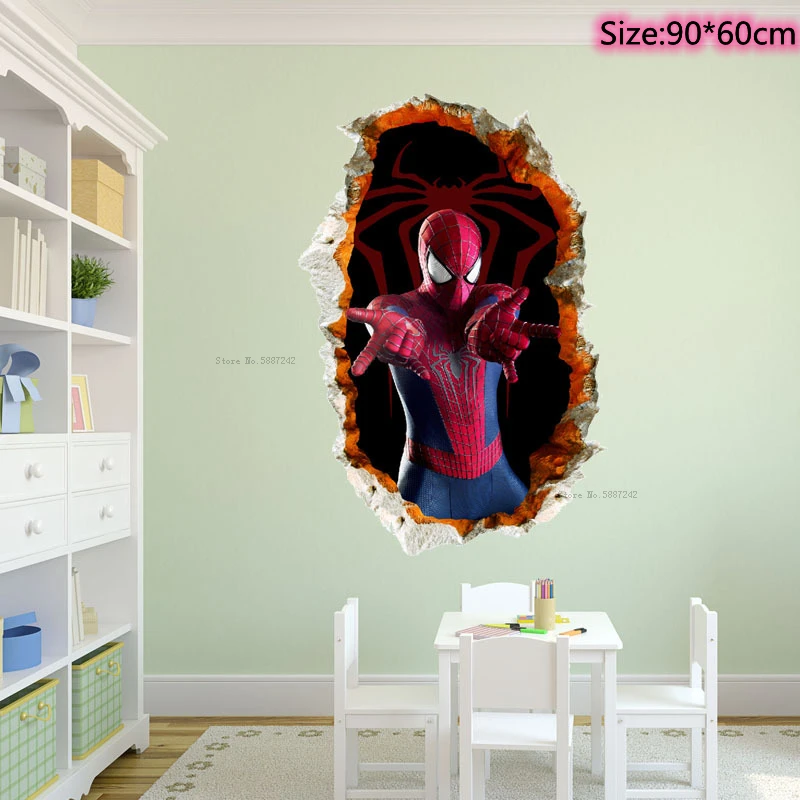 90x60 см Большой Человек-паук автомобили настенные наклейки для детской комнаты Декор Спальни ребенок Человек-паук 3d обои виниловый плакат украшение дома