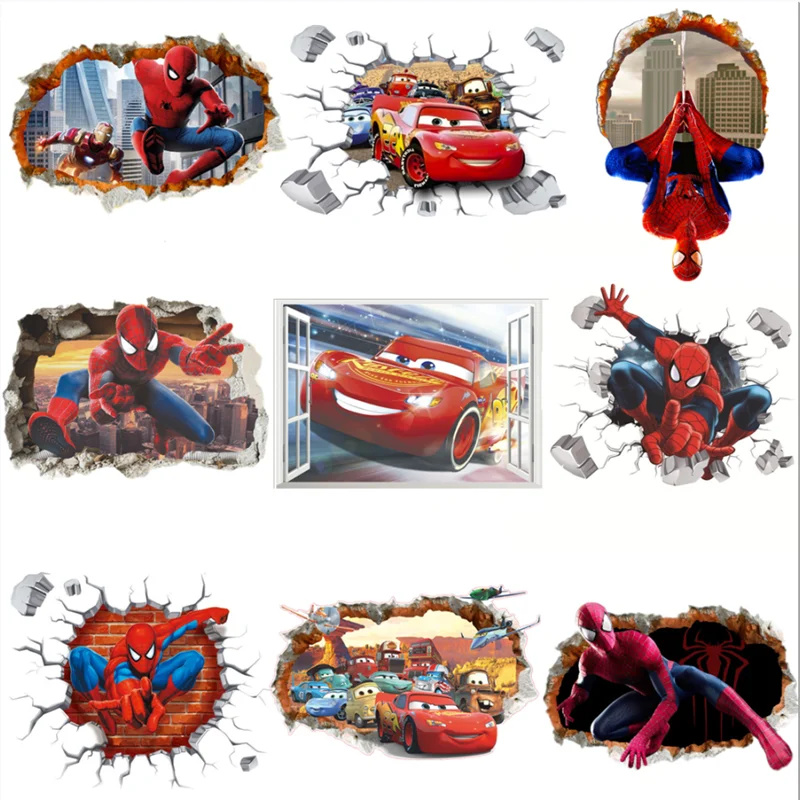 Виниловые 3d обои 90x60 см с изображением больших автомобилей-пауков, настенные Стикеры для украшения детской комнаты, спальни, ребенка, Человека-паука, Постер для украшения дома
