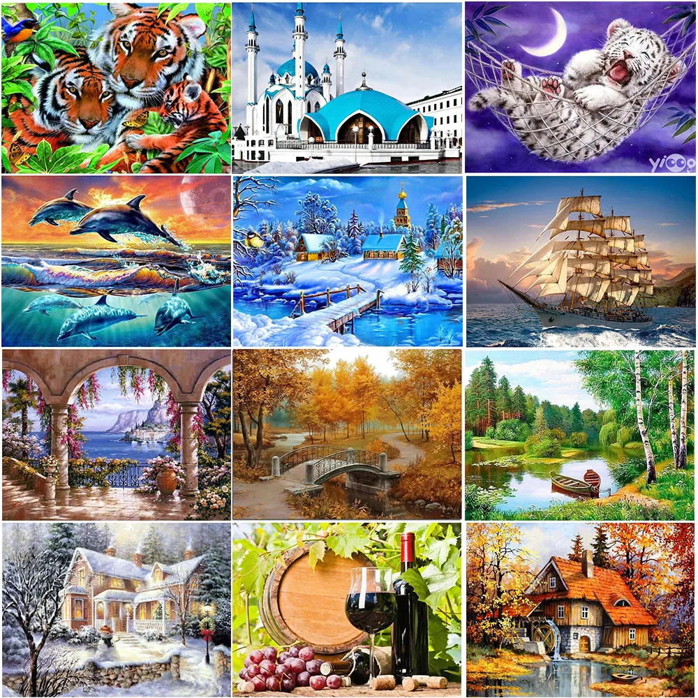 5D алмазная живопись сделай сам, пейзаж, животное, картина Стразы, алмазная вышивка, мозаика, вышивка крестиком, домашний декор, искусство