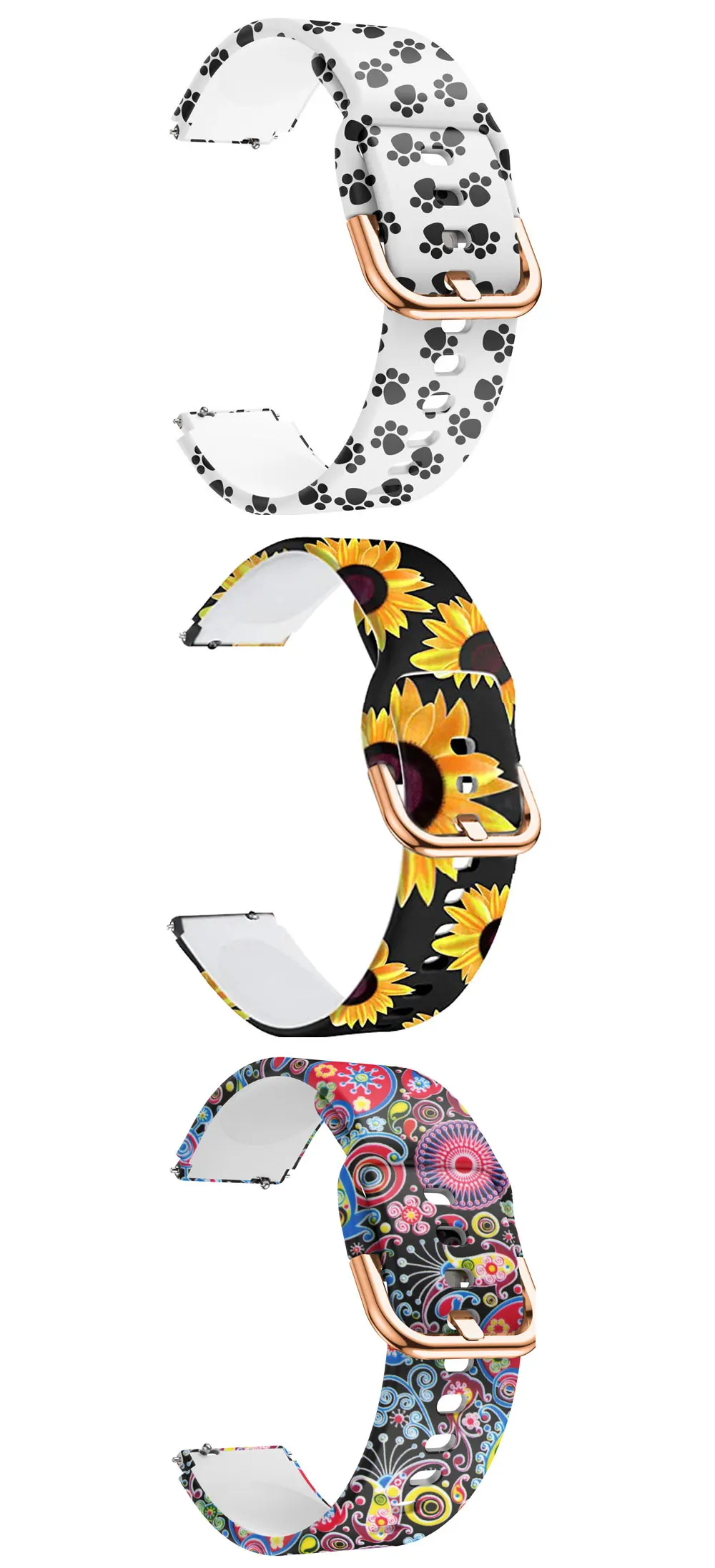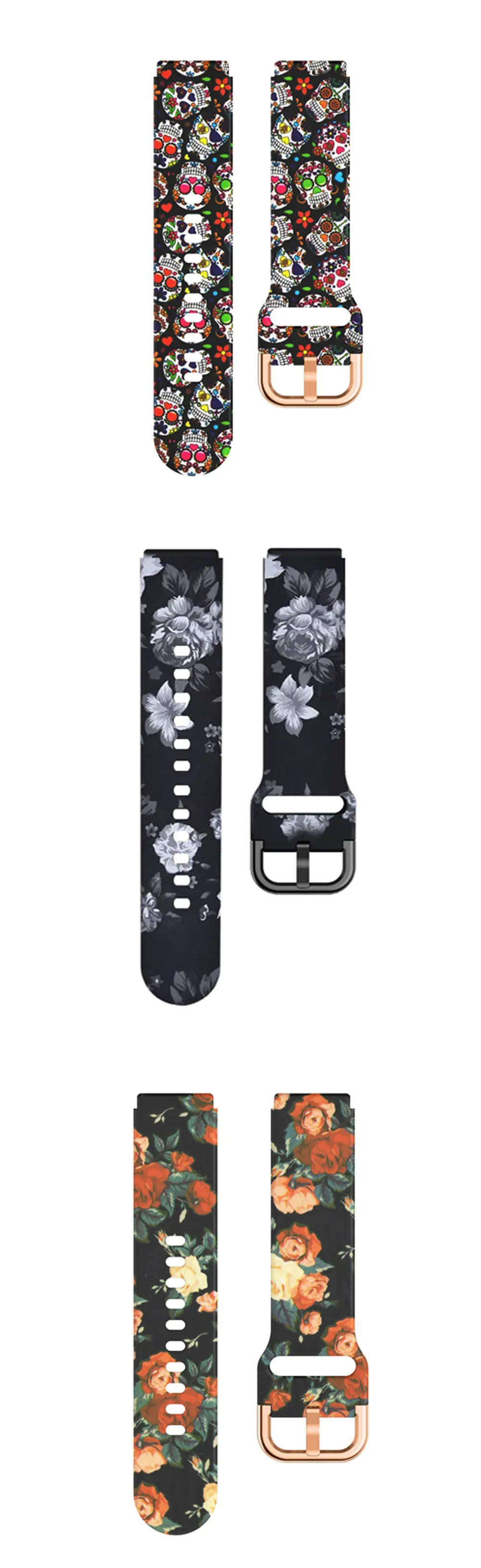 Силиконовый спортивный ремешок 18 мм, ремешок с цветочным принтом д...