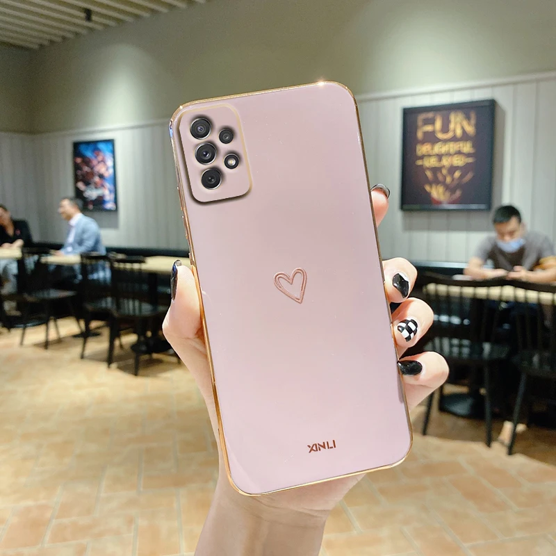 compatible model 4Luxury Square Plating Cute Love Heart Pattern Soft Silicone Phone Case For Samsung Galaxy S22 Back Cover