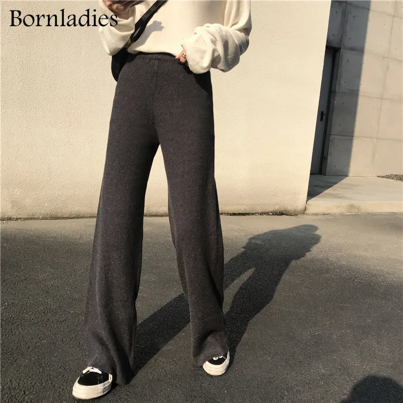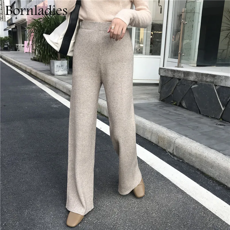 Брюки Bornladies осенне-зимние женские толстые свободные с эластичным поясом прямые трикотажные длинные брюки 2021 Дамский Повседневный свитер брюки
