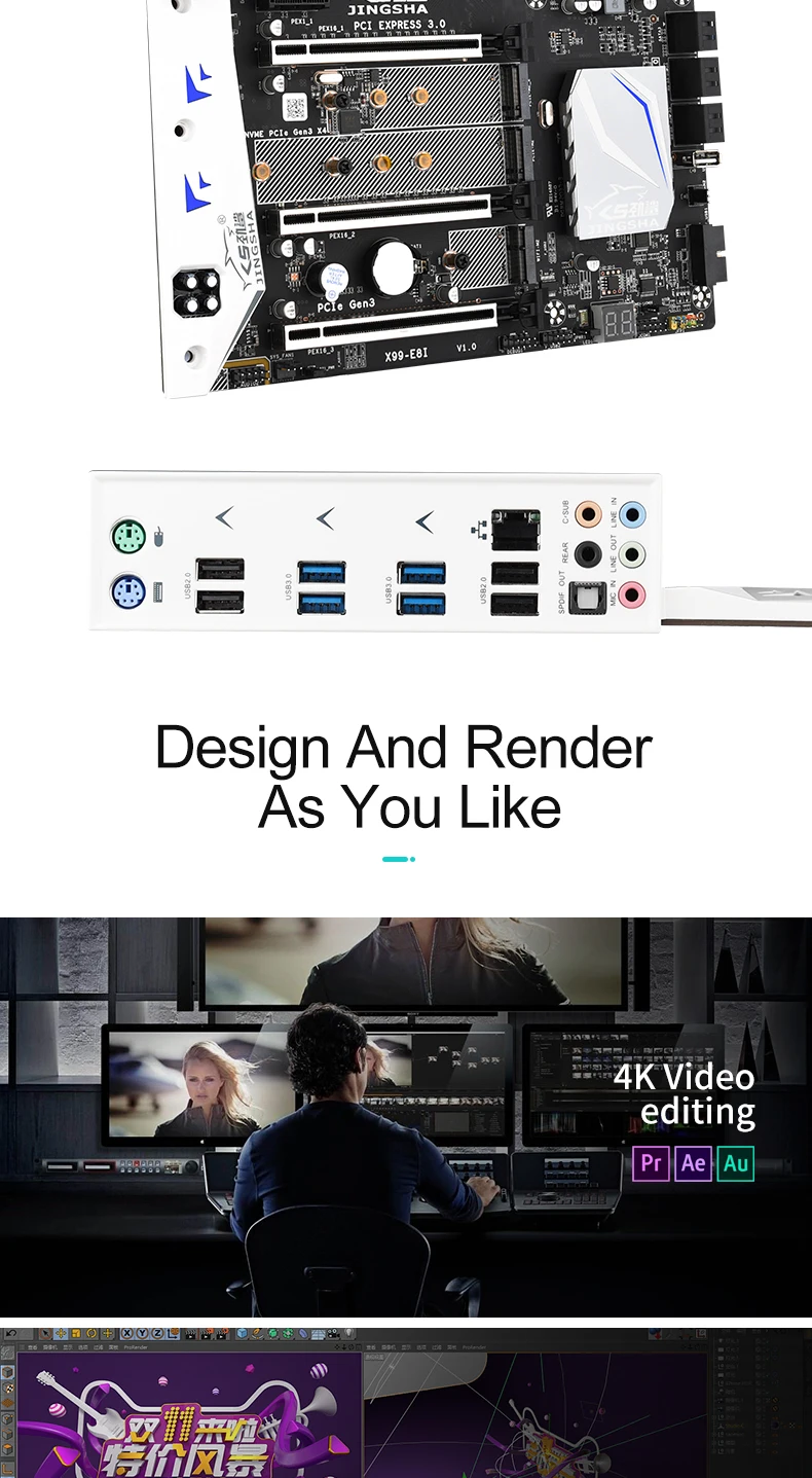 Материнская плата JINGSHA X99E8I, поддержка XEON E5 LGA2011-3 DDR4 ...