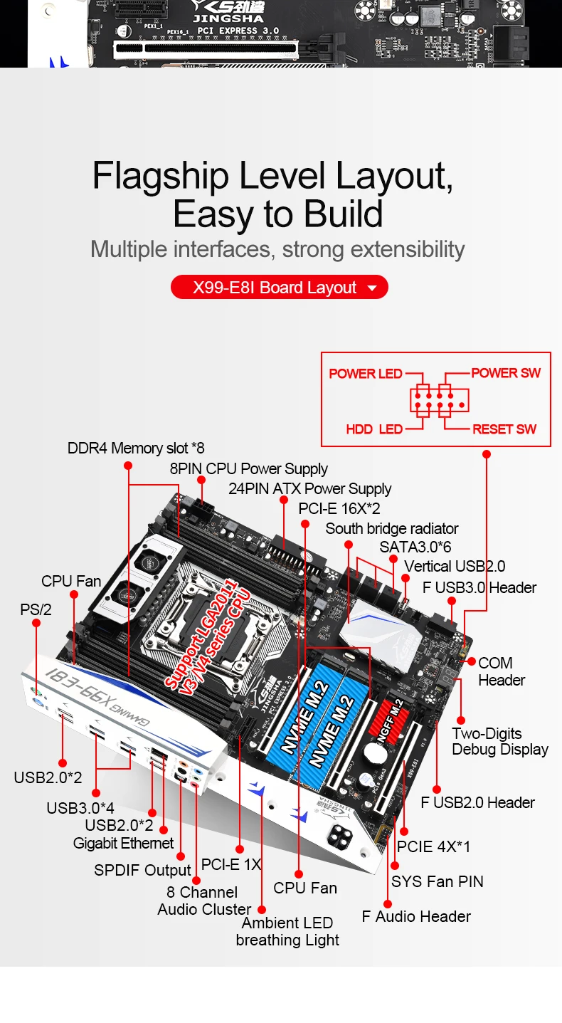Материнская плата JINGSHA X99-E8i, LGA 2011-V3V4 CPU 8 * DDR4 16001...