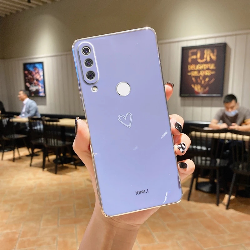 compatible model 3Luxury Square Plating Love Heart Pattern Phone Case For Huawei P20 Lite Cover