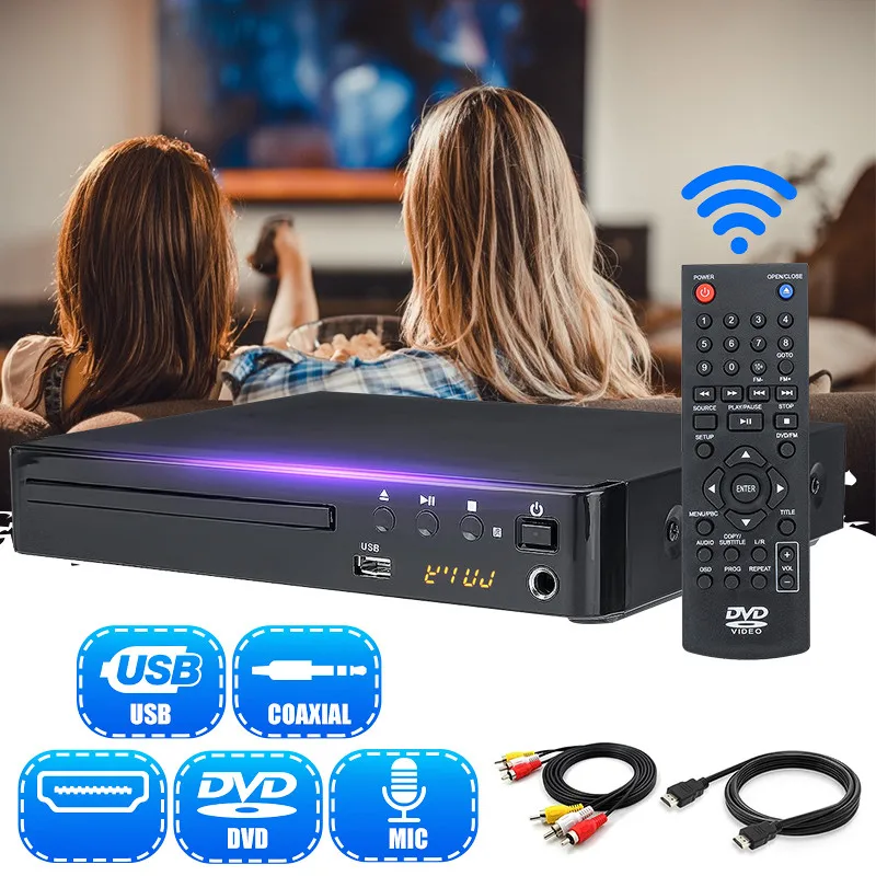 Характеристика:Его функция вывода AV для удобного просмотра.Подходит для вашей семьи, для отправки подарка.Вы можете наслаждаться всеми вашими любимыми фильмами и контентом с этим dvd-плеером.Мощно универсальный, плеер поддерживает не только мультимедийные dvd-диски, но и компакт-диски, музыку, изображение и видео с USB.Также включает в себя широкоугольный обзор и масштабирование, с полнофункциональным пультом дистанционного управления.