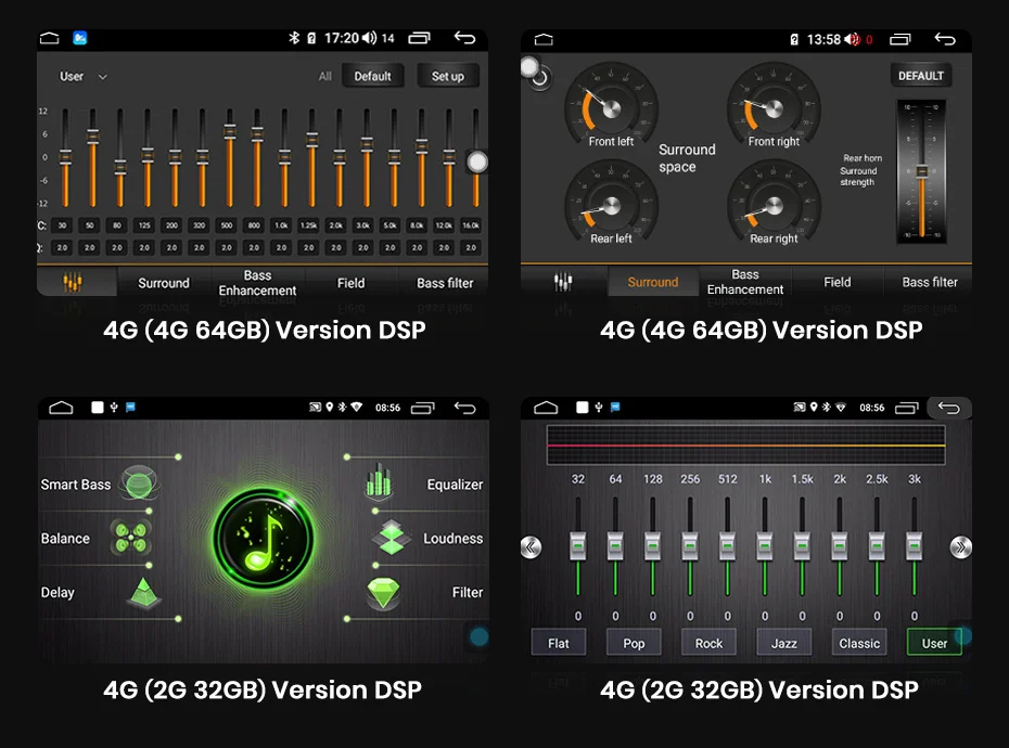 Благодаря встроенному усилению 4*45 Вт музыка звучит очень четко даже при высоких объемах.Вы можете настроить звук для ваших личных предпочтений, с 9 графический эквалайзер: поп, рок, джаз, Классическая, без каблука, пользователя, голоса и т. д.Несколько вариантов настройки позволяют вам наслаждаться звуком лучше.