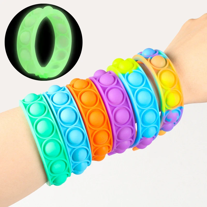 Светящиеся пузырьки, простая игрушка, антистресс, Снятие напряжения, Цветной силиконовый браслет, тревожность, сенсорное СДВГ, дети