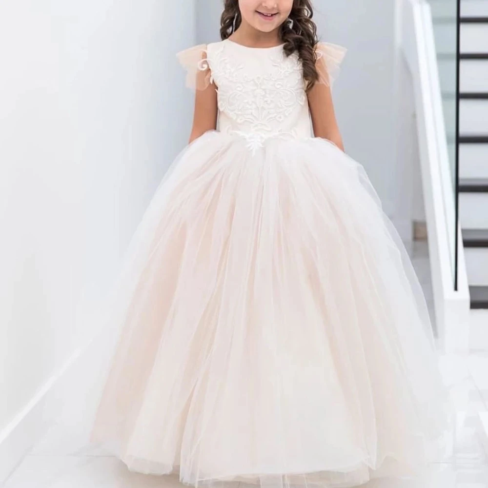 2021 простое бальное платье, платье для девочек с цветочным принтом, кружевные аппликационные платья для маленьких девочек, праздничные платья с рукавами-крылышками, пышное платье с бантом на спине для первого причастия