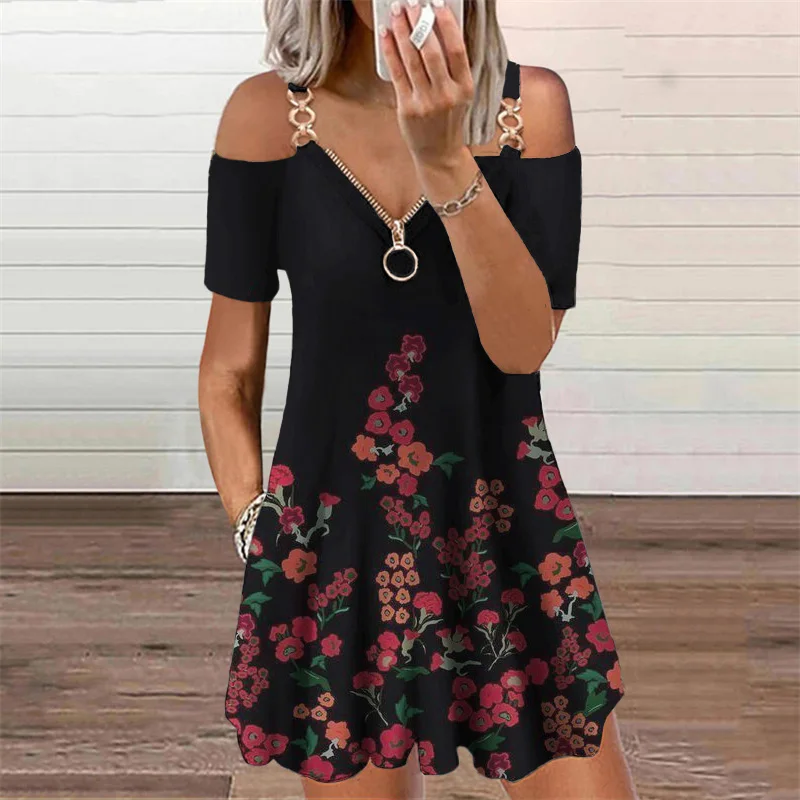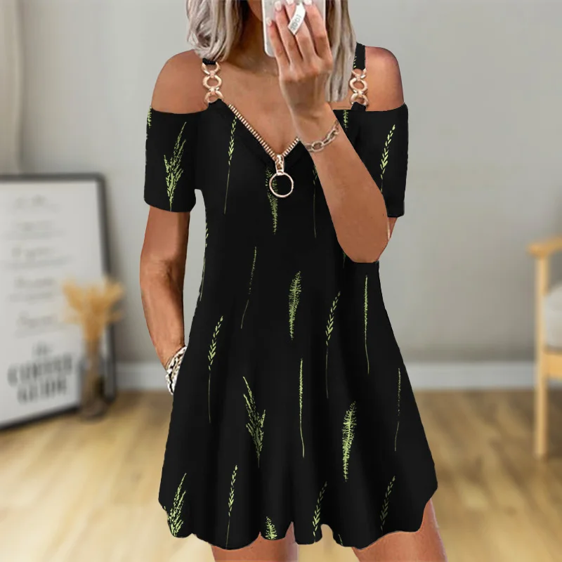 Женское платье-мини на молнии, с V-образным вырезом и коротким рукавом