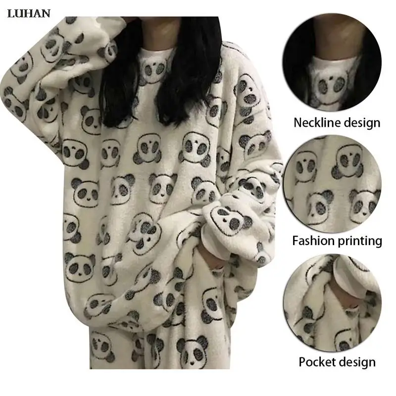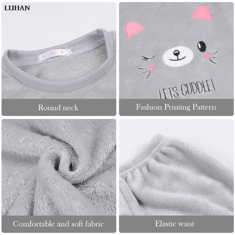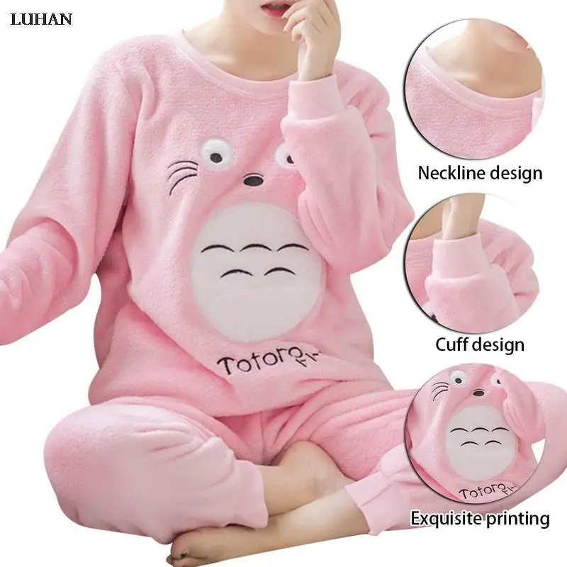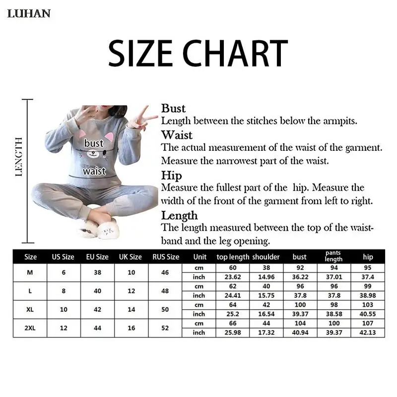 Теплый Женский Пижамный костюм, Рождественская хлопковая одежда для сна, домашняя одежда из 2 предметов, брюки, женские зимние пижамные комплекты