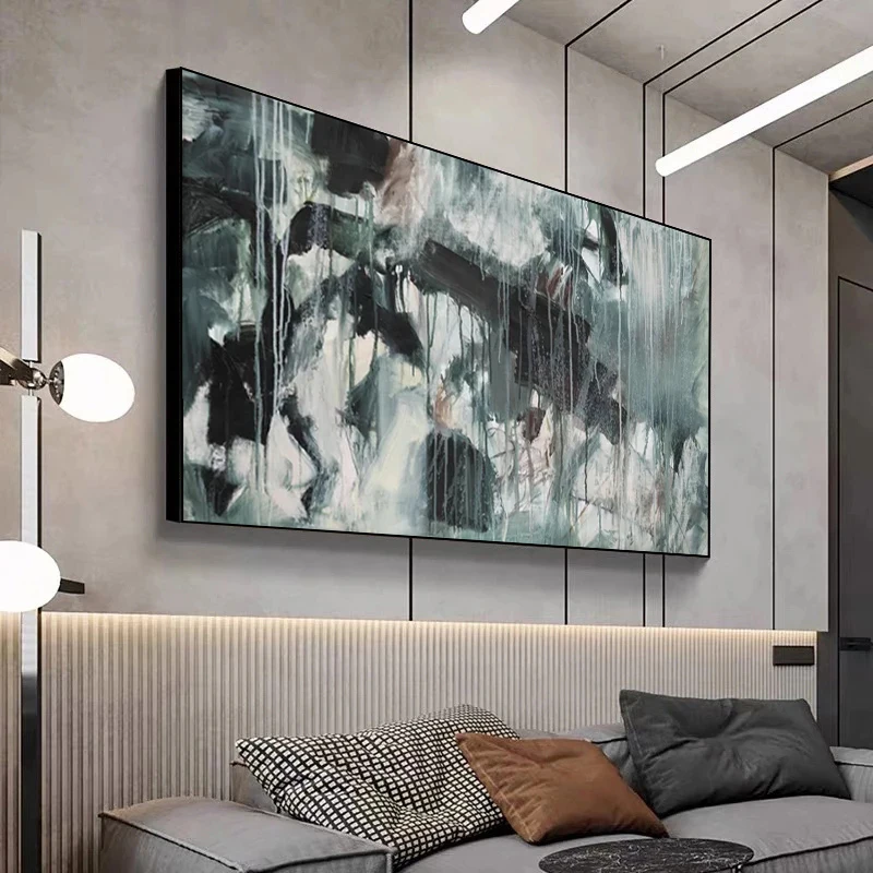 Ретро Минималистичная абстрактная темно-зеленая картина маслом на холсте, настенные художественные картины и плакаты, Куадрос для гостиной, украшение для дома
