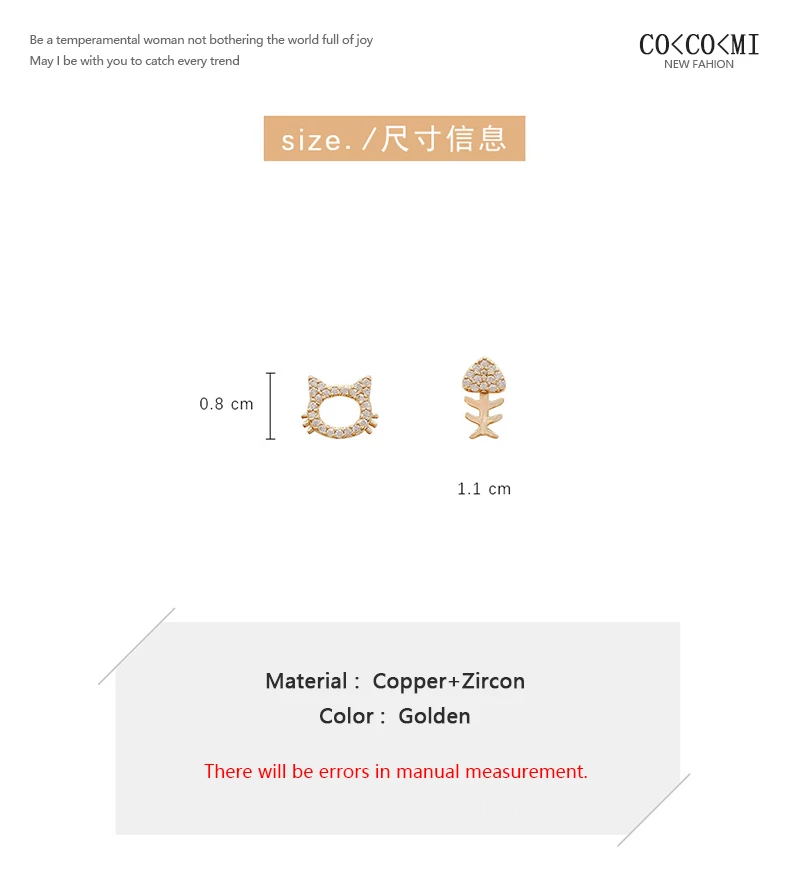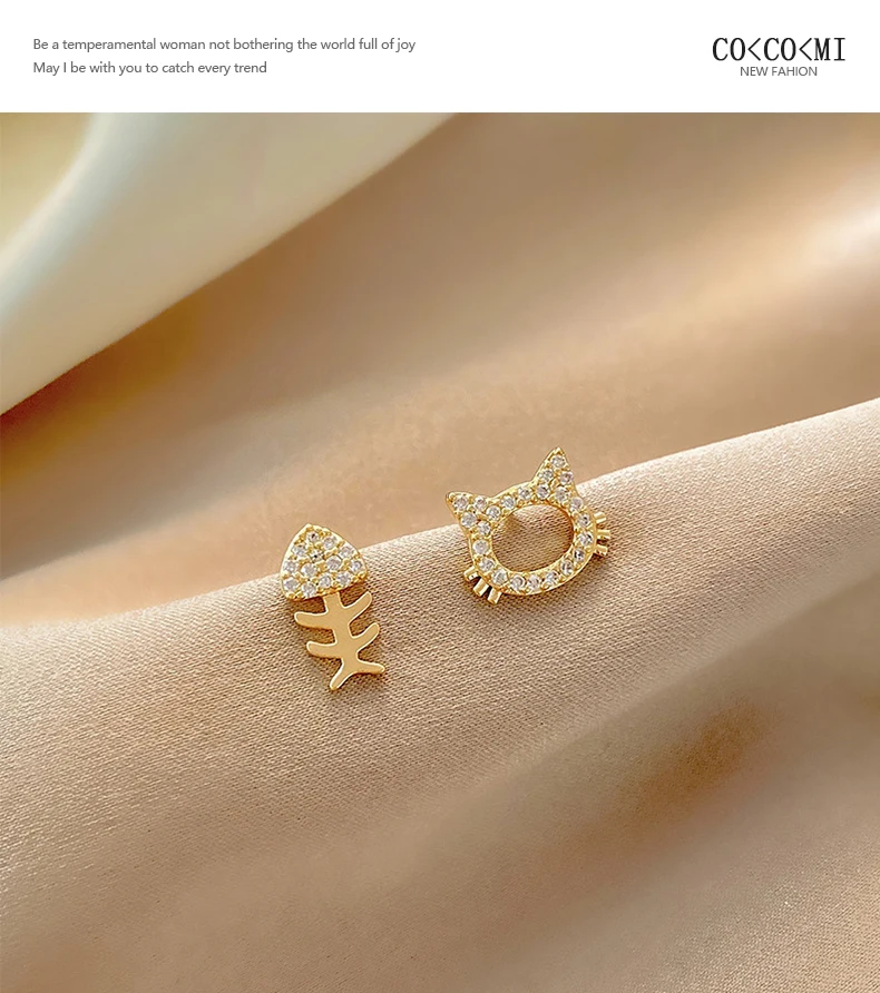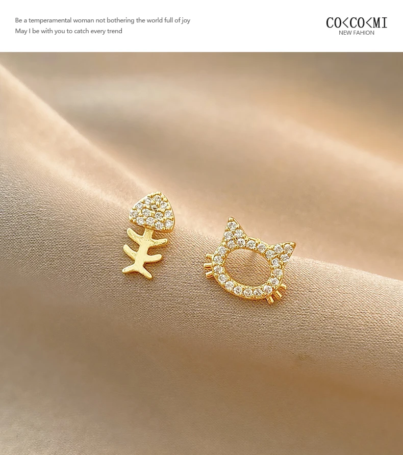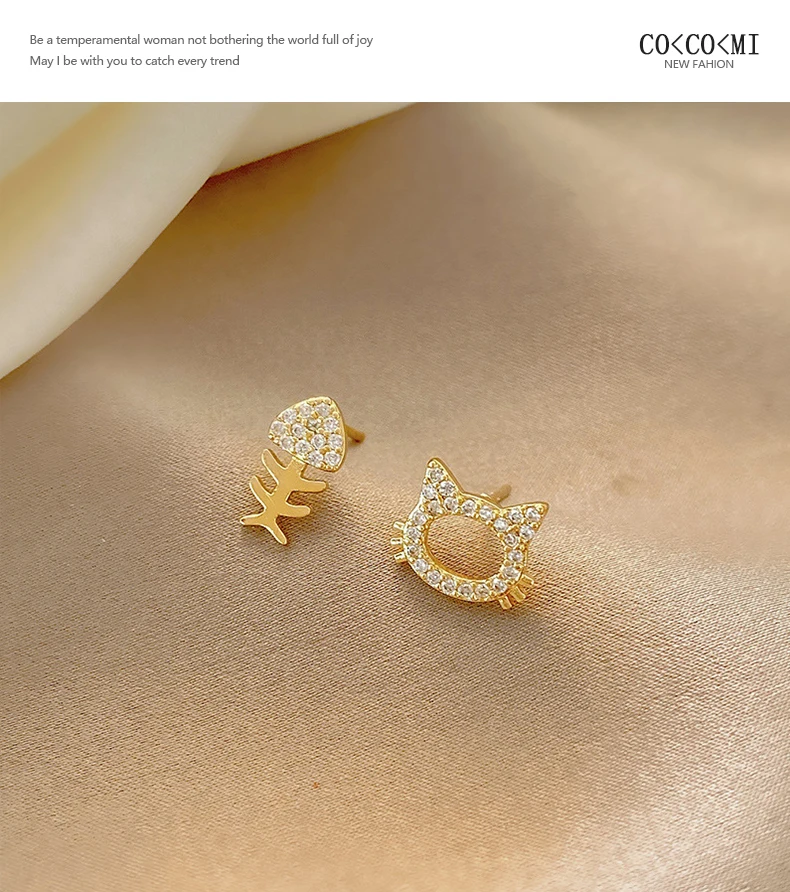 Серьги-гвоздики в виде рыбьего костяного кота Необычные Ювелирные Изделия Из Инкрустированного циркония