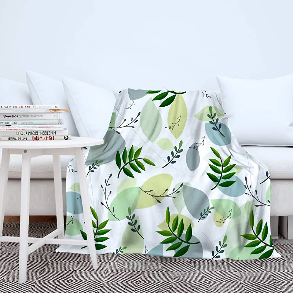 Мягкое одеяло с рисунком растений, легкий плед для кровати, дивана, одеяло с рисунком листьев, всесезонный плед для детей и взрослых