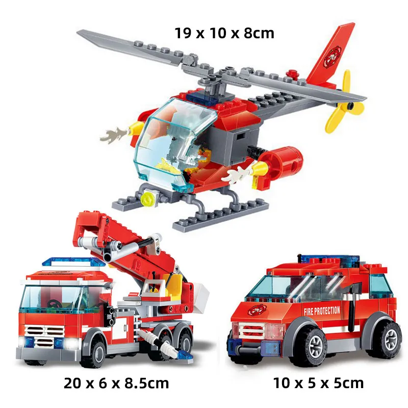 Детский конструктор пожарные машины, пожарная станция, вертолет, Лодка