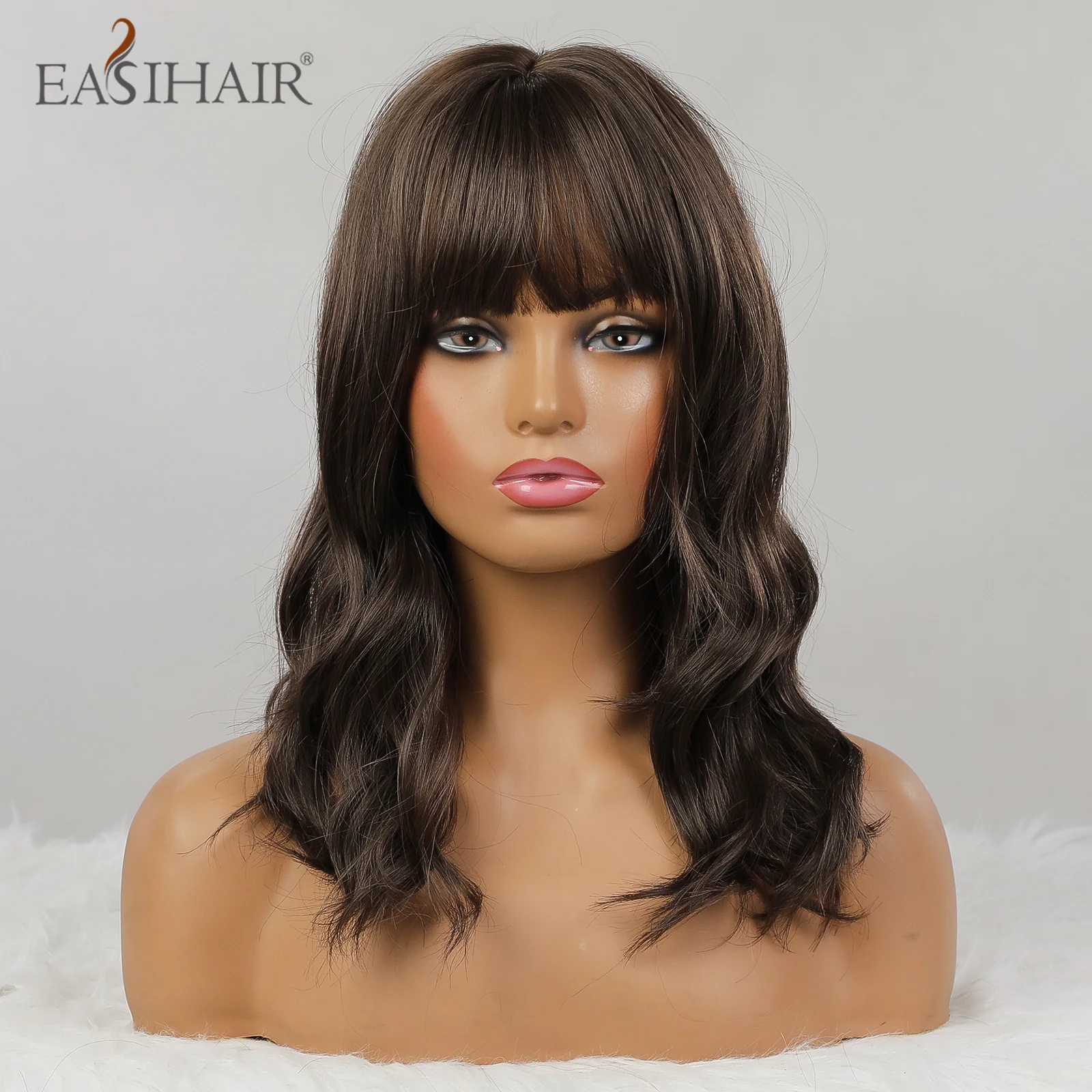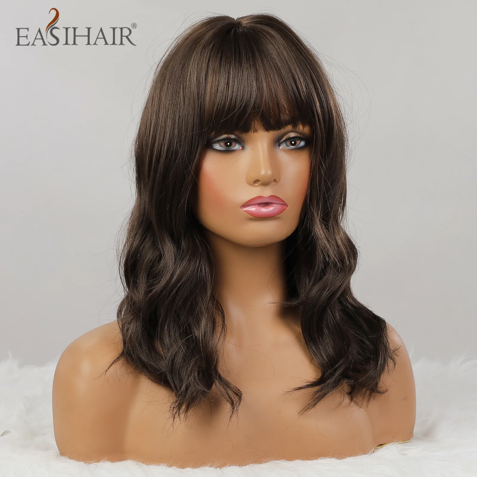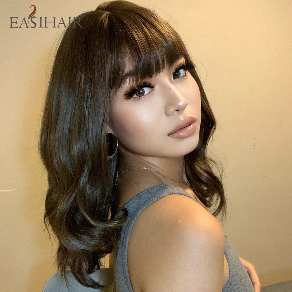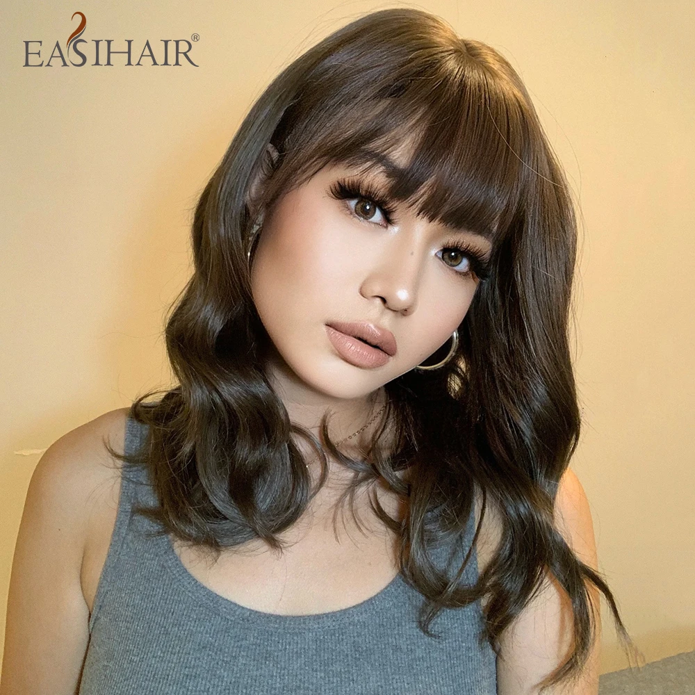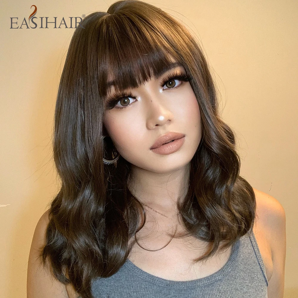 Женский парик с волнистыми волосами EASIHAIR, темно-коричневый термостойкий парик для косплея