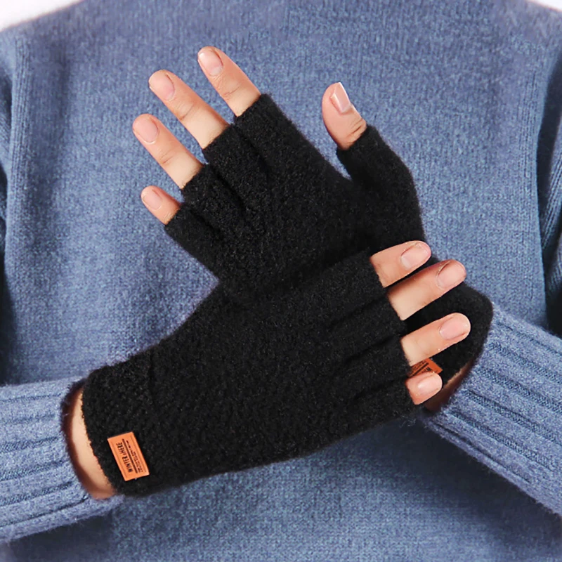 Зимние перчатки без пальцев для мужчин, вязаные перчатки с открытыми пальцами, теплые шерстяные эластичные перчатки для вождения, оптовая продажа