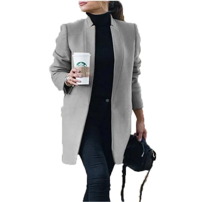 Женское повседневное шерстяное пальто, Универсальные однотонные пал...