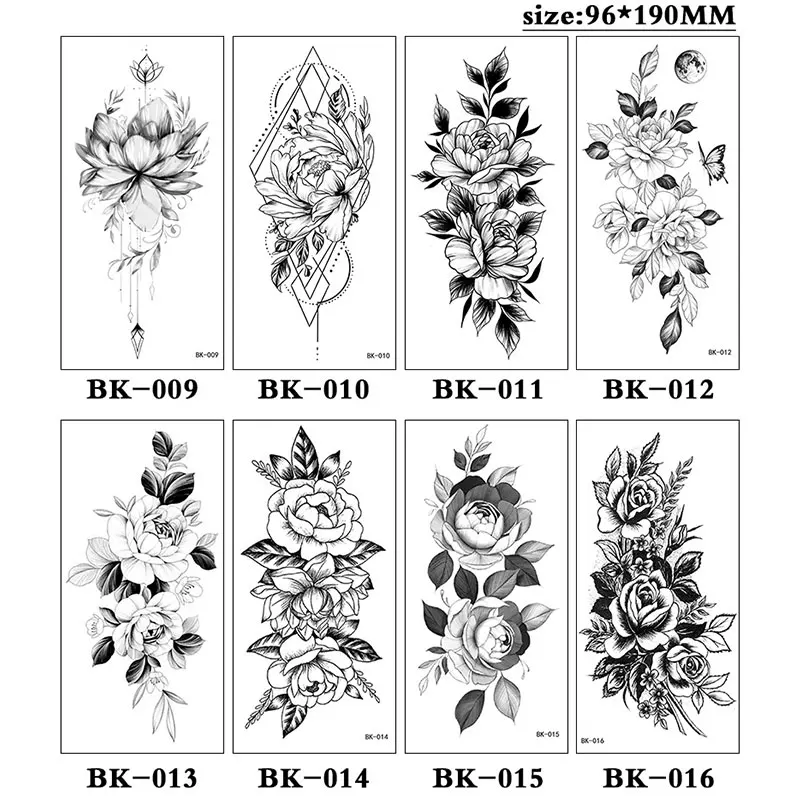 Временные татуировки с пикантными цветами для женщин, боди-арт, татуировки на руку и ноги, наклейки, реалистичные искусственные черные розы, водостойкие татуировки