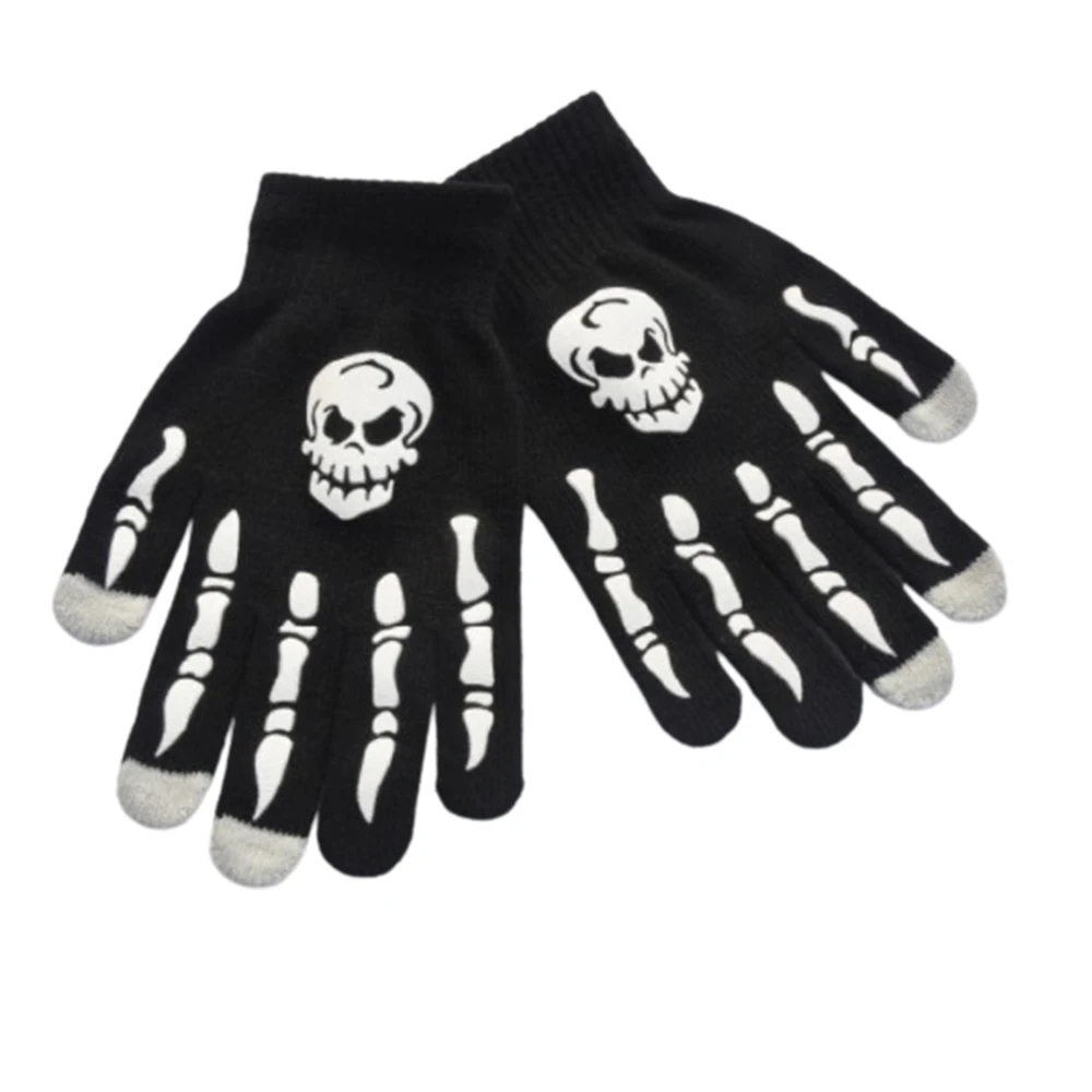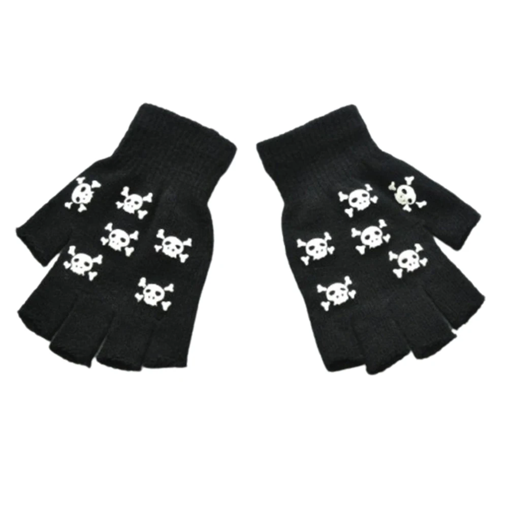 1 пара, велосипедные перчатки, череп скелета на Хэллоуин, перчатки с полупальцами, светится в темноте, тянущиеся вязаные зимние варежки без пальцев