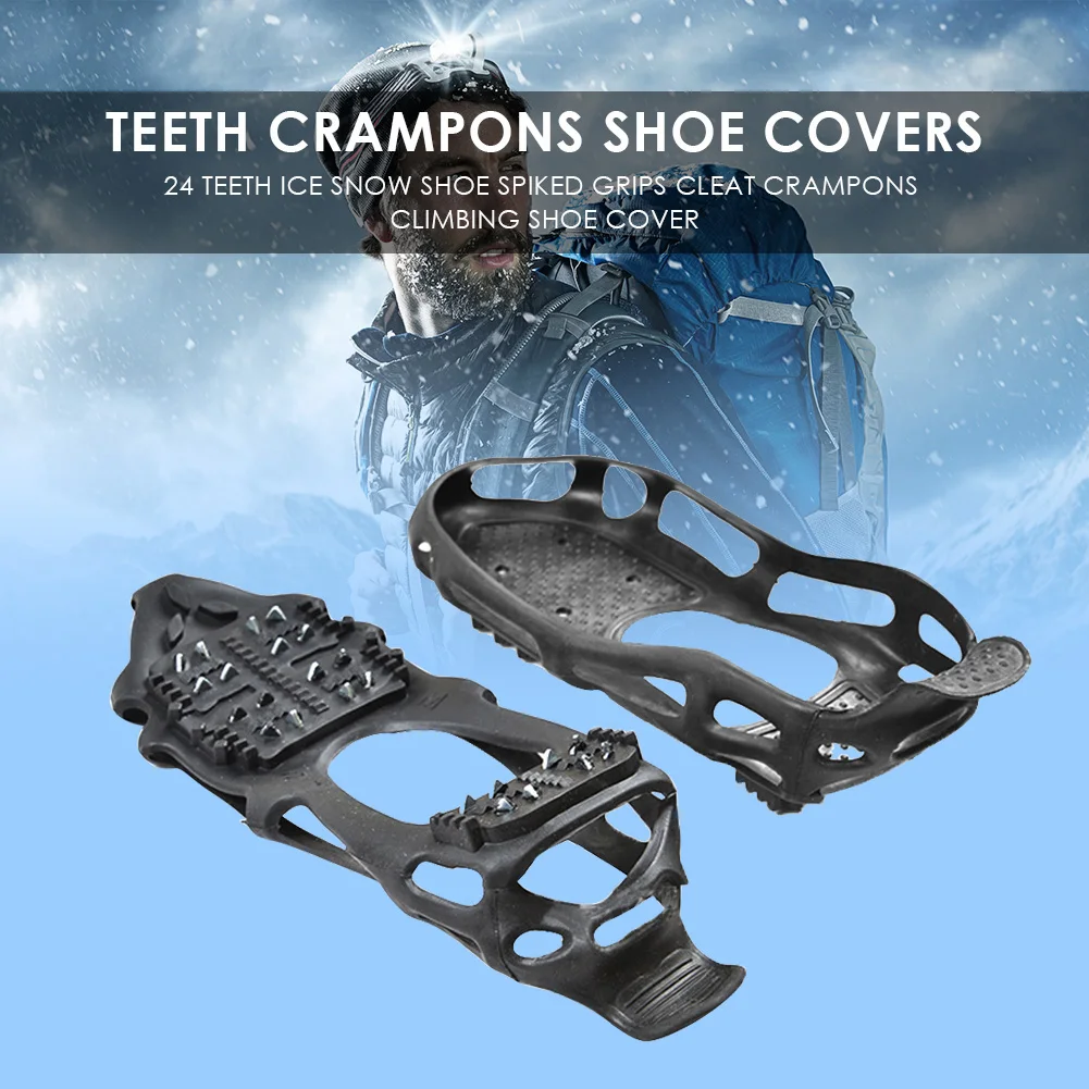 24 зубные шипы, ледяные снежные захваты, походные шипы, скобы, нескользящая обувь для обуви, снегоходы, Пешие прогулки, скалолазание, альпинизм, Спорт на открытом воздухе, черный