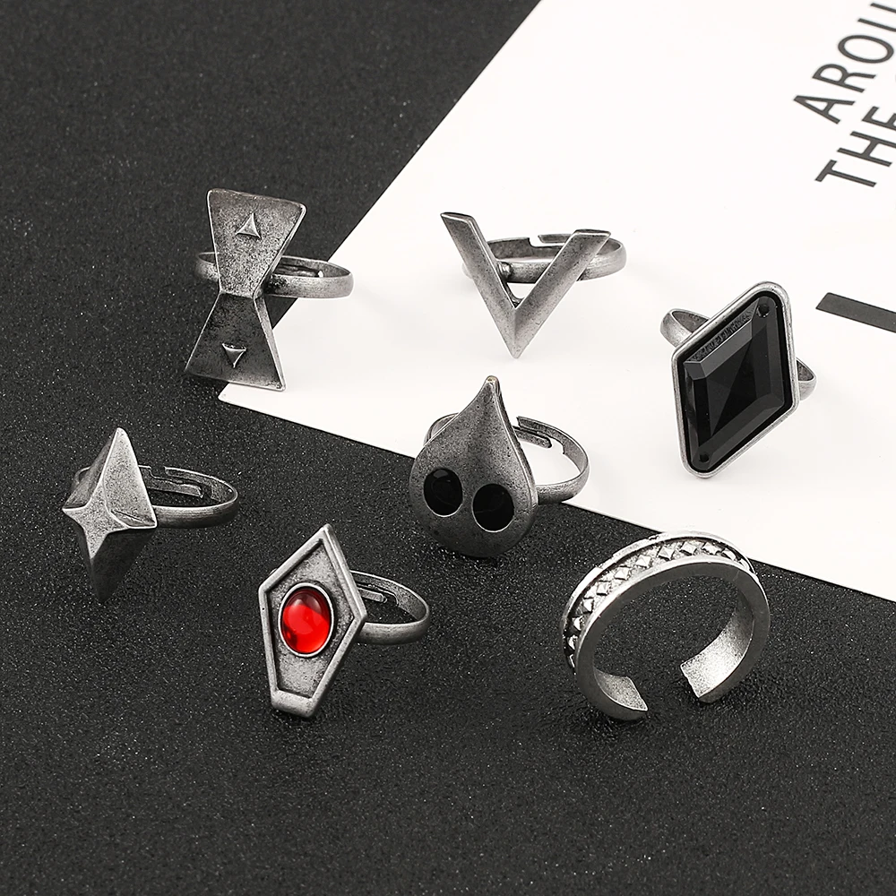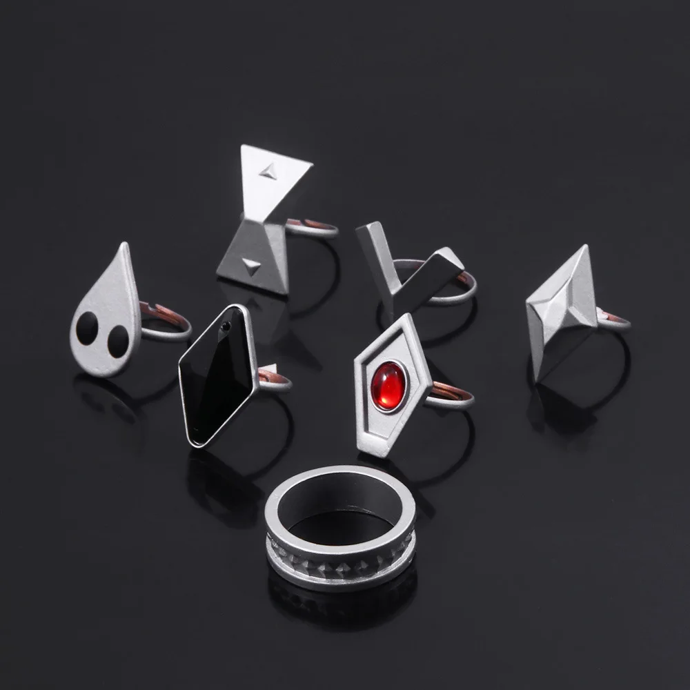 Новинка 7 шт.компл. аниме Genshin Impact Hutao Косплей кольца игровые персонажи одинаковое регулируемое металлическое кольцо женские тартаглия реквизит ювелирные изделия