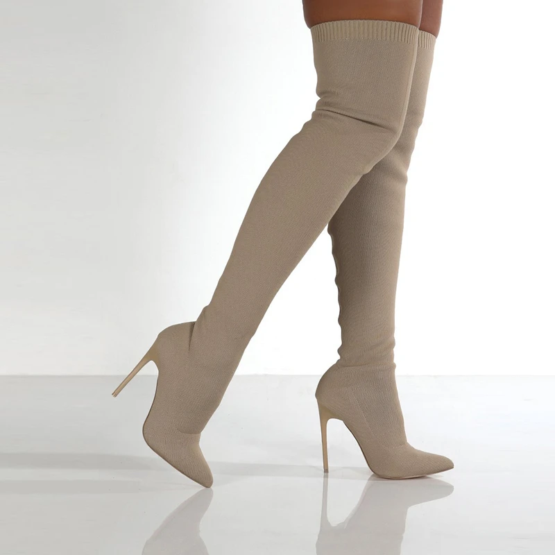 Зимние женские эластичные сапоги, привлекательные повседневные теплые женские сапоги до середины икры на высоком тонком каблуке, модифицированные вязаные женские сапоги