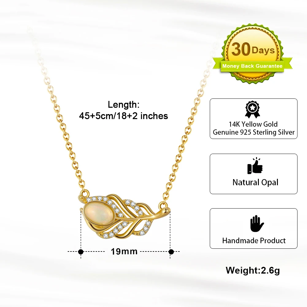 ORSA JEWELS ожерелье с натуральным драгоценным камнем, натуральным опалом, пером, цельное серебро 925 пробы, ожерелье для женщин и девушек, золото 14 к, GMN02
