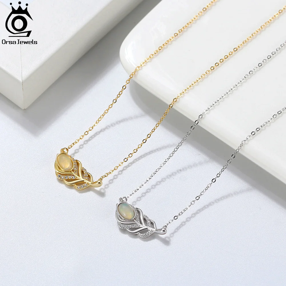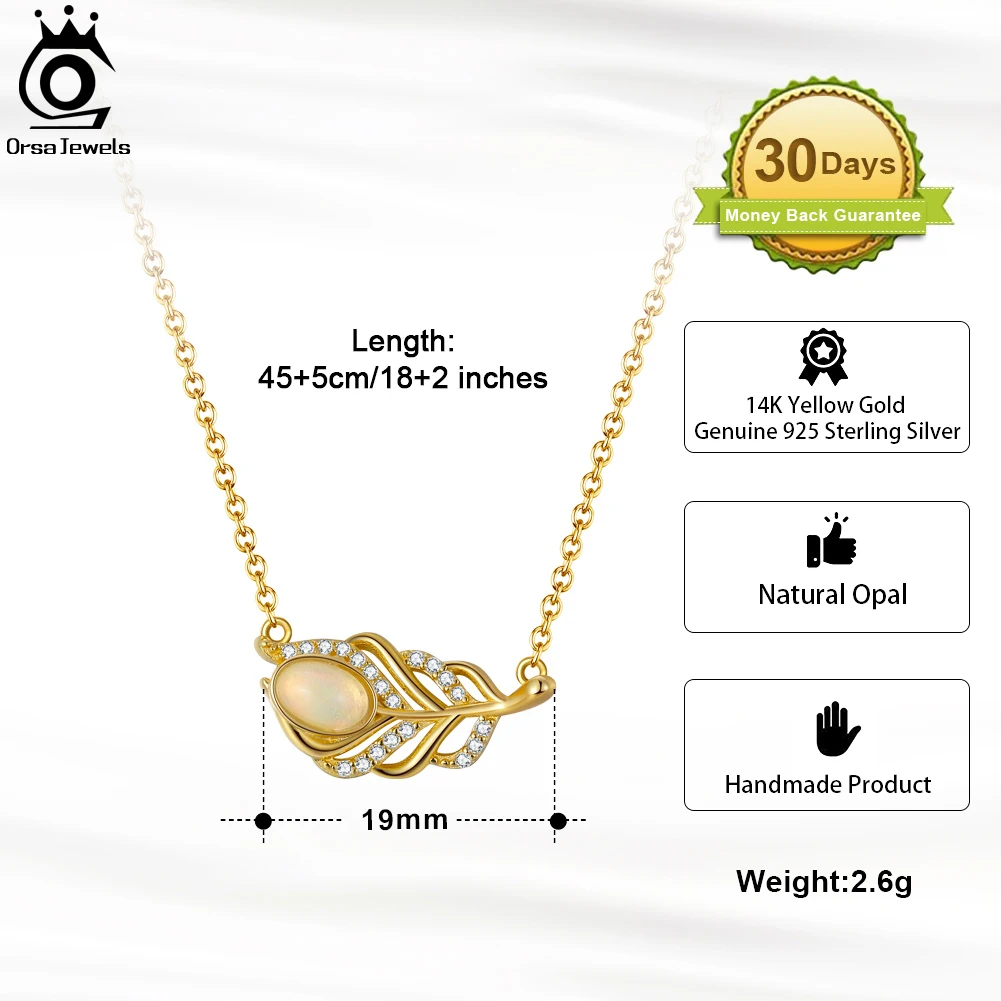 ORSA JEWELS натуральный драгоценный Камень Натуральное Опаловое перо ожерелье чистое серебро 925 пробы ожерелье для женщин и девушек 14K золото GMN02