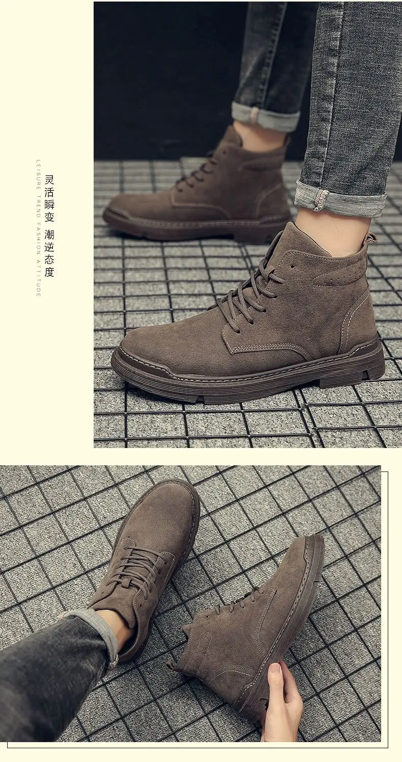 Зимние мужские ботинки, теплые ботинки в римском стиле, кожаная обувь с высоким верхом, кроссовки, уличные ботинки из искусственной замши, мужские ботильоны