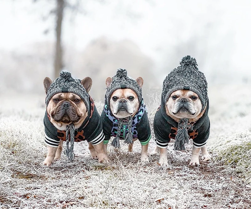 Зимняя теплая шапка для собак ветрозащитная вязаная шапка для франц...