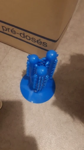 1. Материал: TPR 2. Доступные цвета: синий, зеленый, желтый 3. С функцией присоски 4. Список посылка: Игрушечная зубная щетка для собаки * 1 шт.