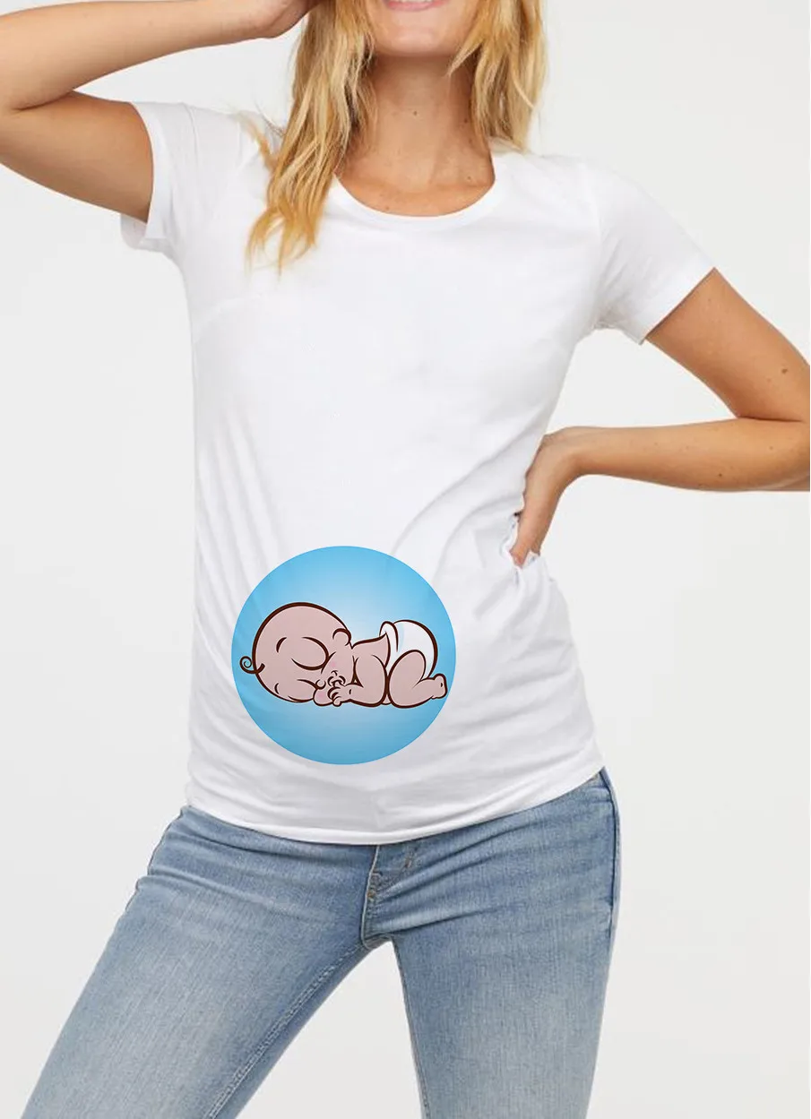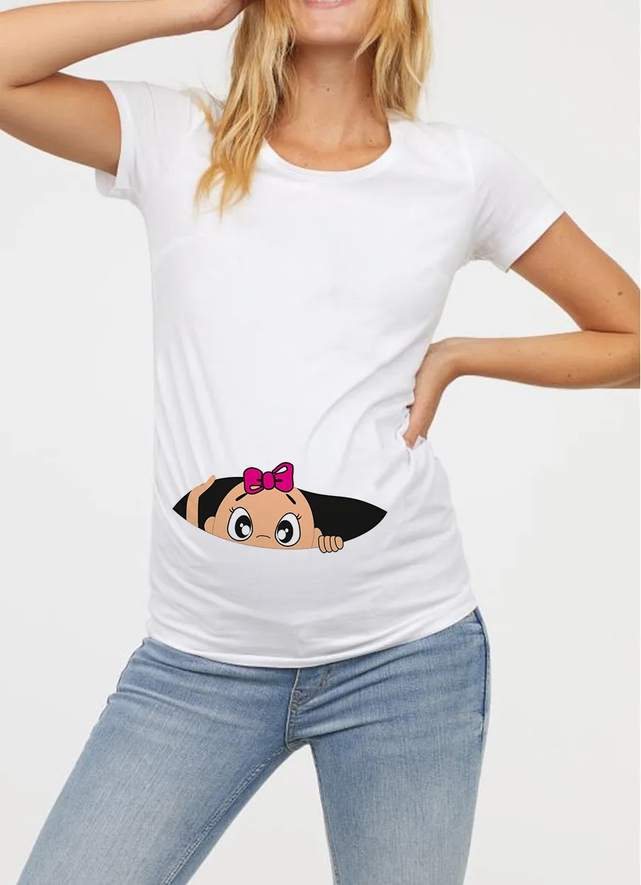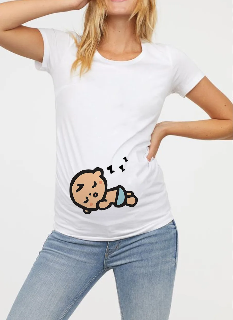 Женская одежда для беременных Футболка для беременных Забавный топ с милым принтом для малышей с круглым вырезом и коротким рукавом топы для беременных рубашка для беременных