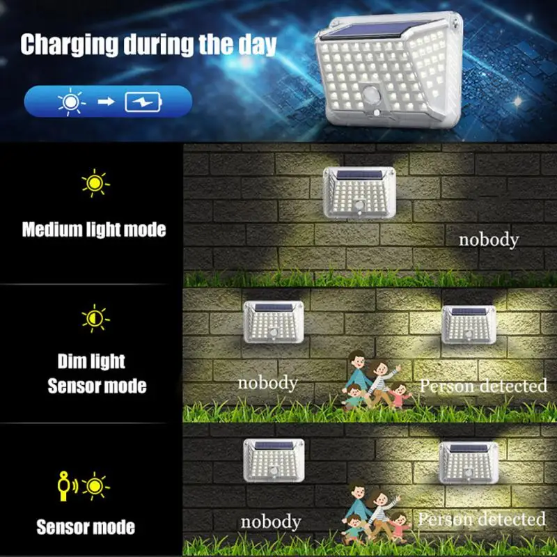 Светодиодная уличная лампа на солнечной батарее, водонепроницаемый точечный светильник с пассивным ИК датчиком движения, уличное освещение для украшения сада, настсветильник светильник с 3 режимами