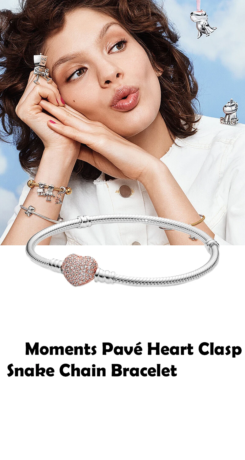 Женский браслет-цепочка из серебра 2021 пробы, с оригинальной засте...