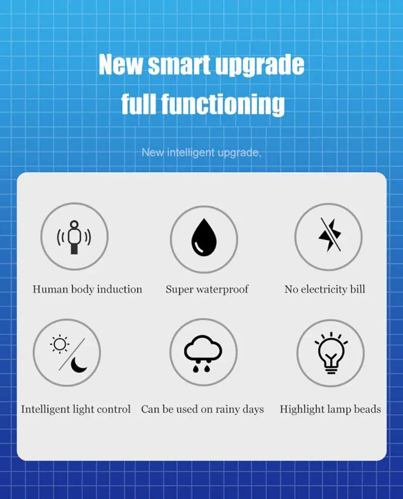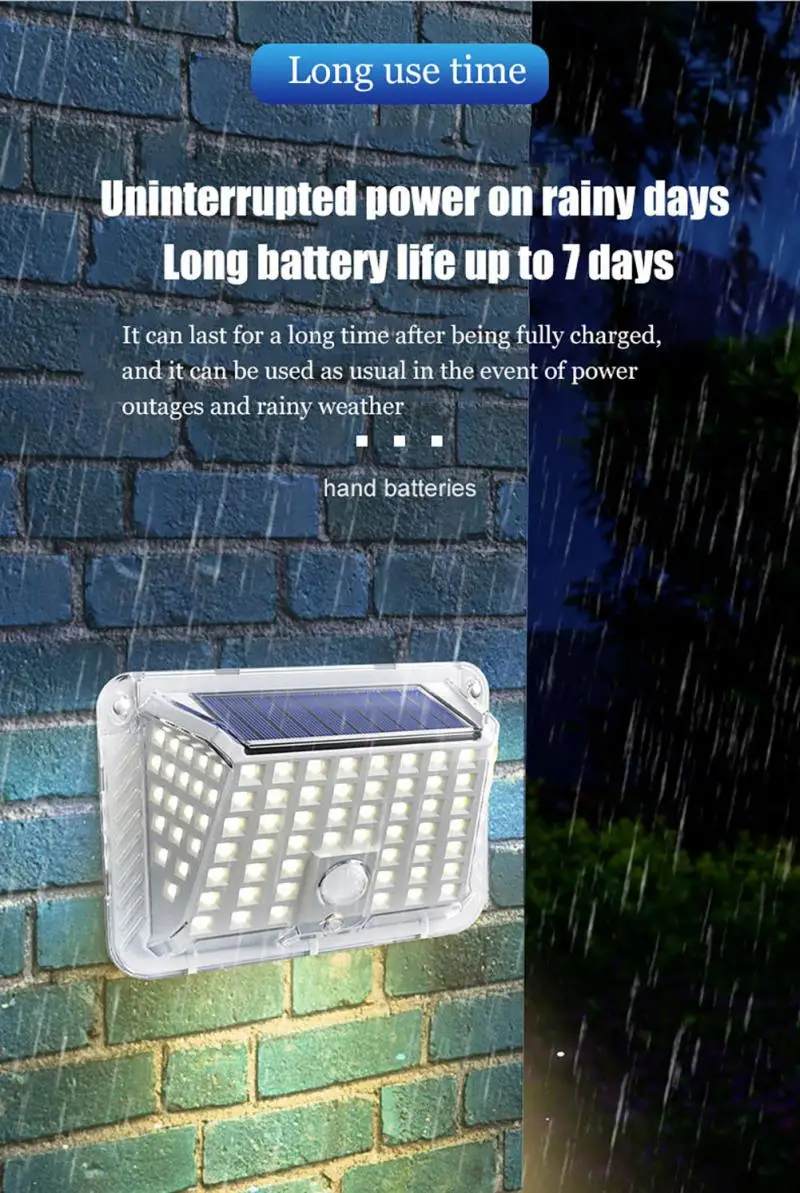 Непрерывная мощность в дождливые дни, долгий срок службы батареи до 7 дней, долгий срок службы батареи после полной мощности, и он может быть ярким, как обычно, чехол отключения электроэнергии и дождливой погоды.