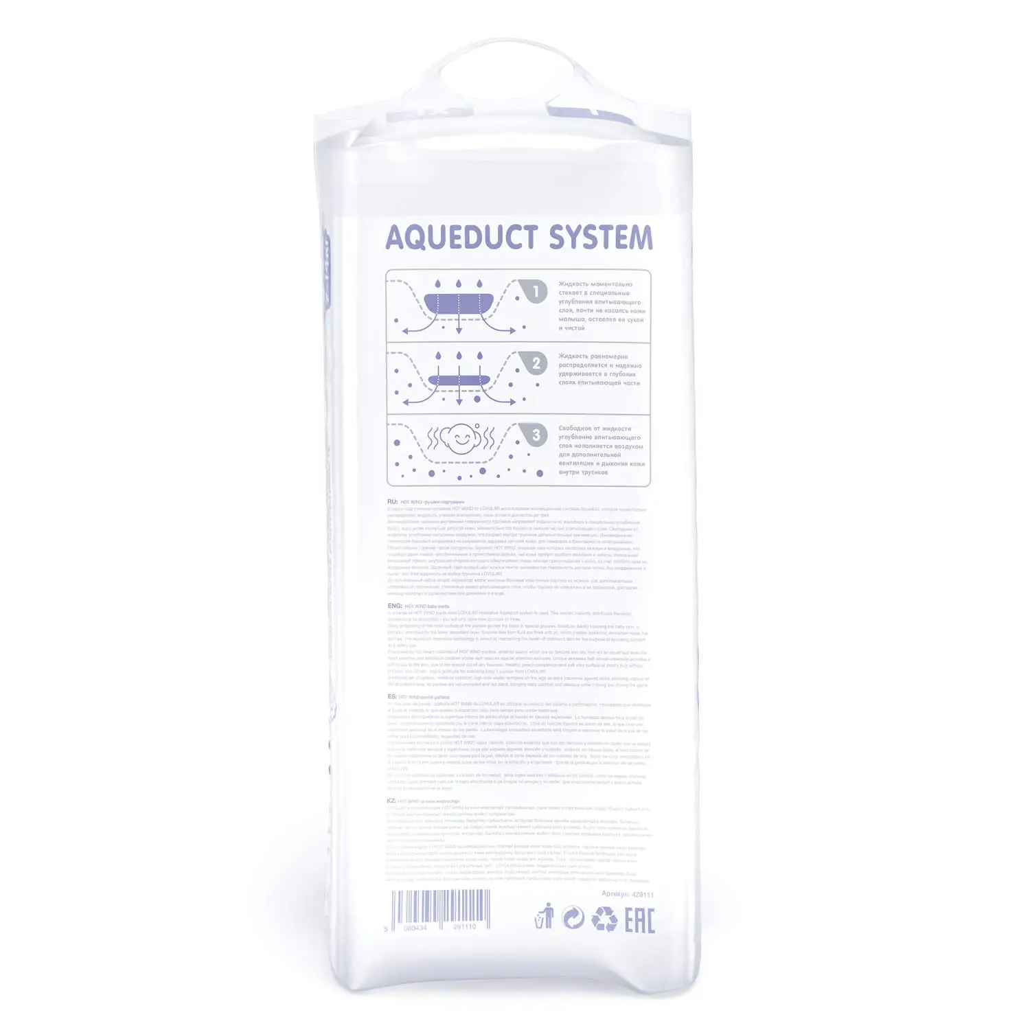 В серии подгузников – трусиков HOT WIND от LOVULAR использована инновационная система Aqueduct, которая моментально распределяет жидкость , ускоряя впитывание, лишь успеете досчитать до трёх.Волнообразное теснение внутренней поверхности трусиков направляет жидкость по желобкам в специальные углубления. Влага, едва успев коснуться детской кожи, моментально поглощается нижней частью впитывающего слоя. Свободные от жидкости углубления наполнены воздухом, что создает внутри трусиков дополнительную вентиляцию. Инновационная технология Aqueduct направлена на сохранение здоровья детской кожи, для комфортного и безопасности использования.