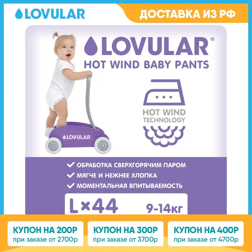 Трусики -подгузники LOVULAR HOT WIND L, 9-14 кг. 44 штуп