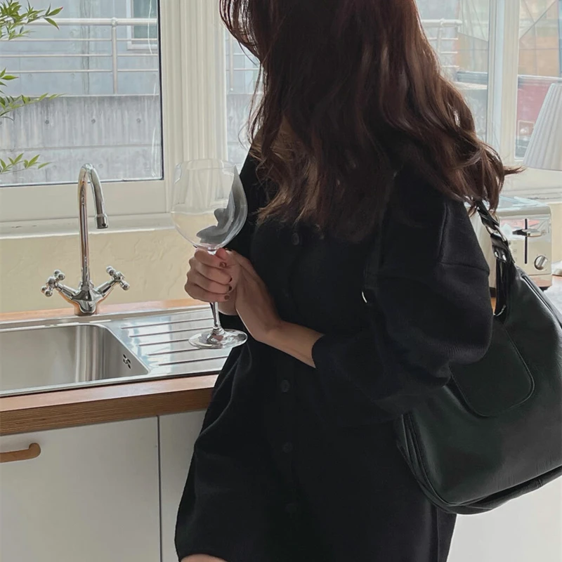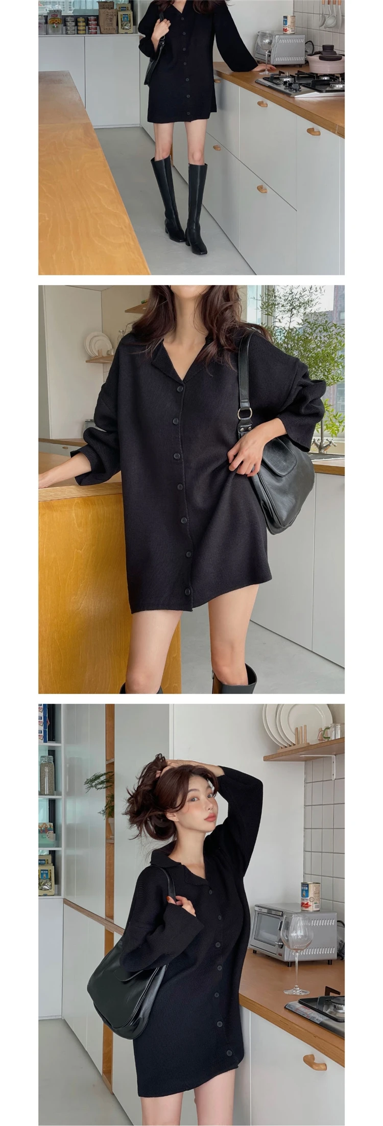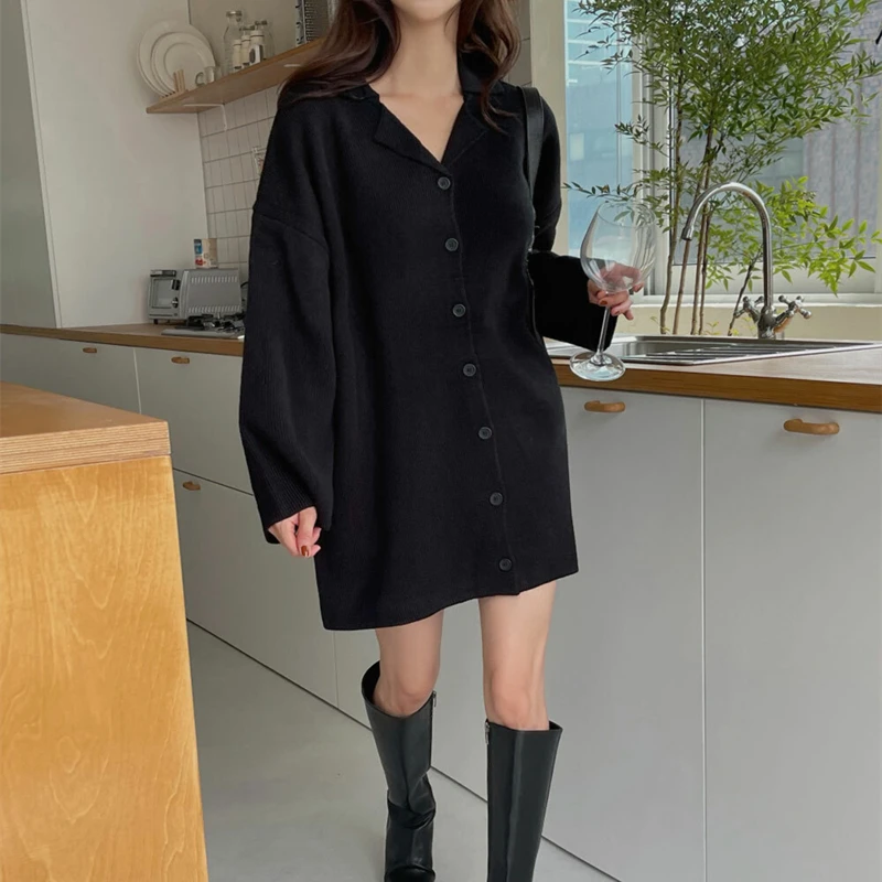 Женское трикотажное платье-свитер, однотонное черное Элегантное однобортное плотное вязаное платье с V-образным вырезом, мини-платье в Корейском стиле, 2021