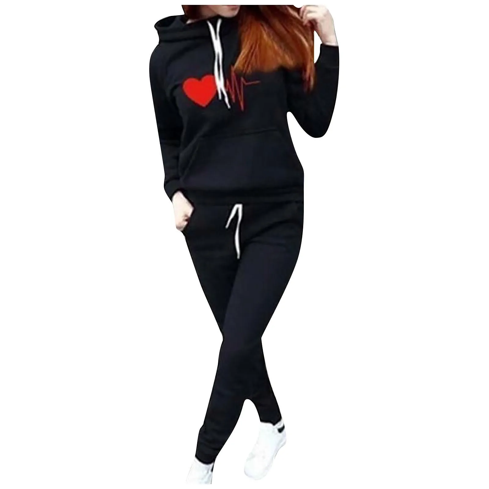 Женский зимний комплект из 2 предметов, женский спортивный костюм, плотный пуловер с капюшоном, толстовки, домашний теплый свитшот, костюм для женщин T6