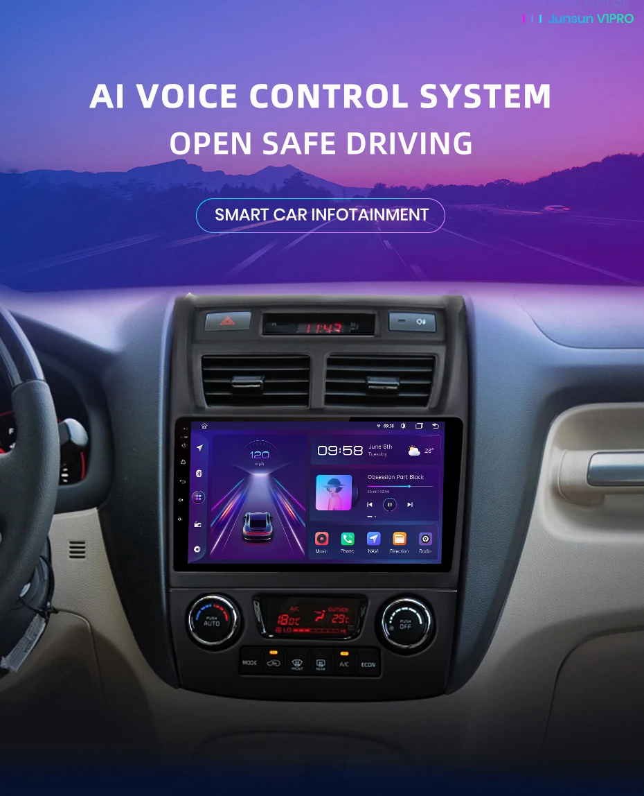 Автомагнитола Junsun V1pro, мультимедийный проигрыватель на Android для Kia Sportage 2 2007-2009, 4G, 2din, GPS