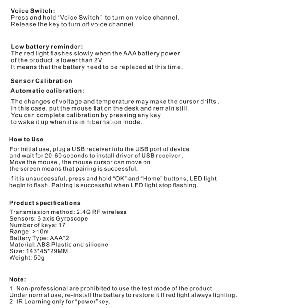 3. Прост в использовании: 17-клавишным воздуха Мышь, легко регулировать громкость, страница вверх/вниз, leftight и т. д., вы можете просто сидеть на диване и пользуйтесь услугой.